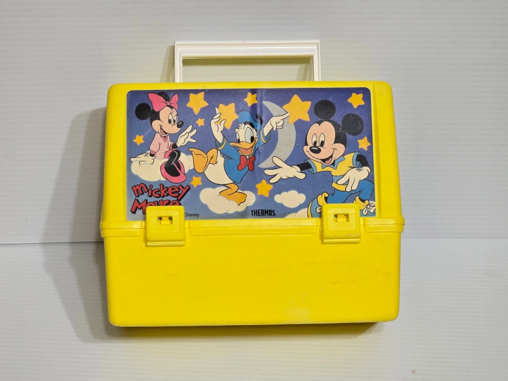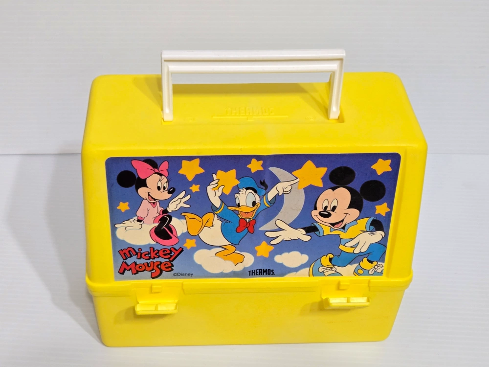 Selling a vintage Thermos lunchbox featuring Mickey Mouse, Minnie Mouse, and Donald Duck! It's bright yellow and in great shape for its age. Perfect for a collector P/U in Blackfalds