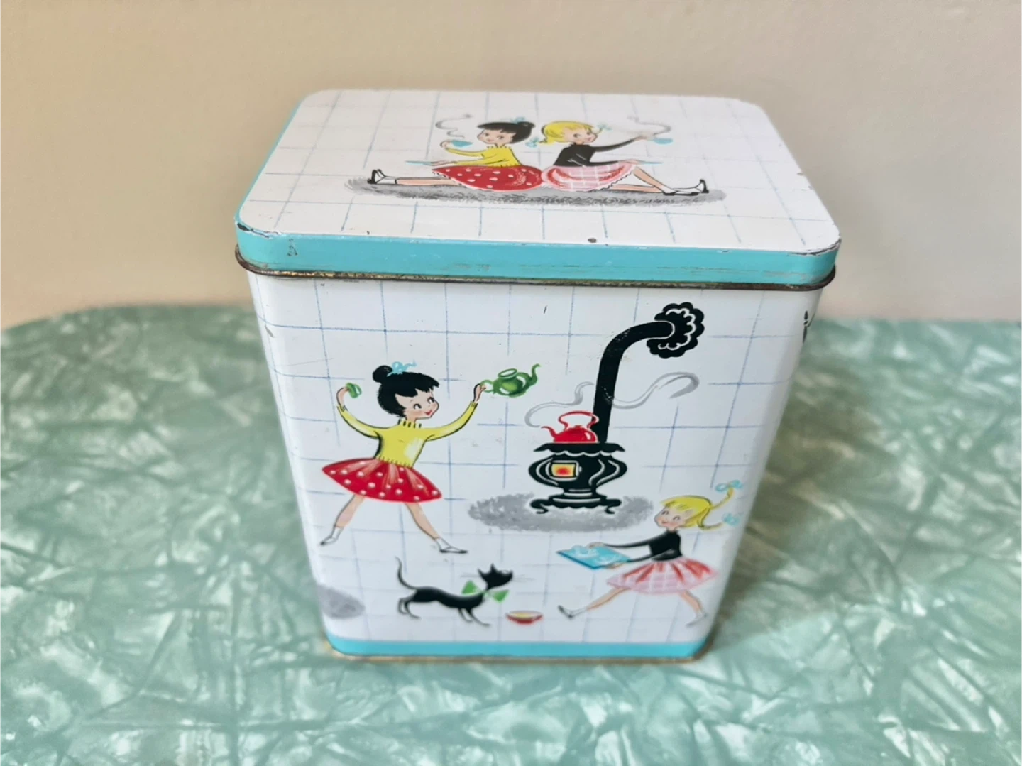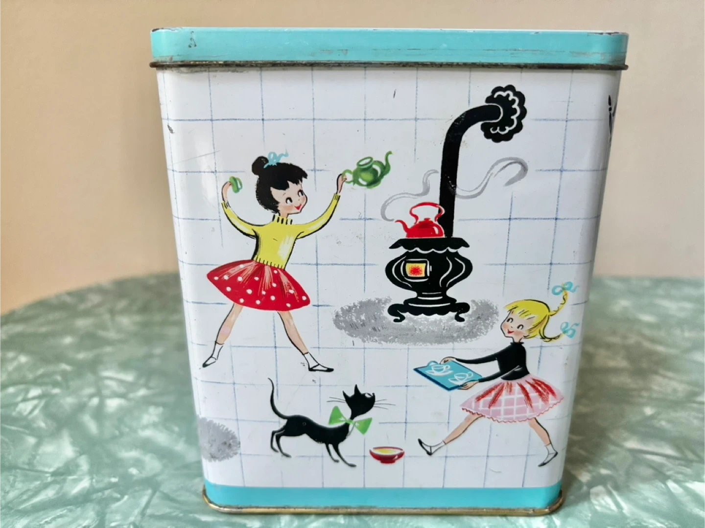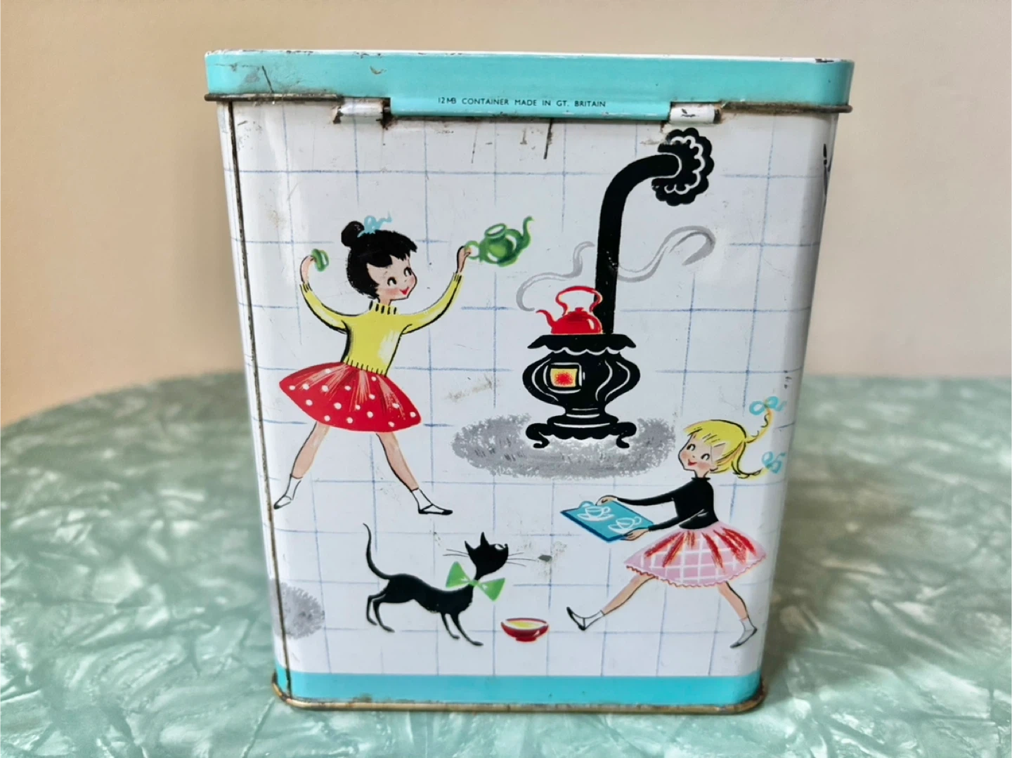 Vintage Tin Container Riley’s Toffee with Retro Kitchen Design
