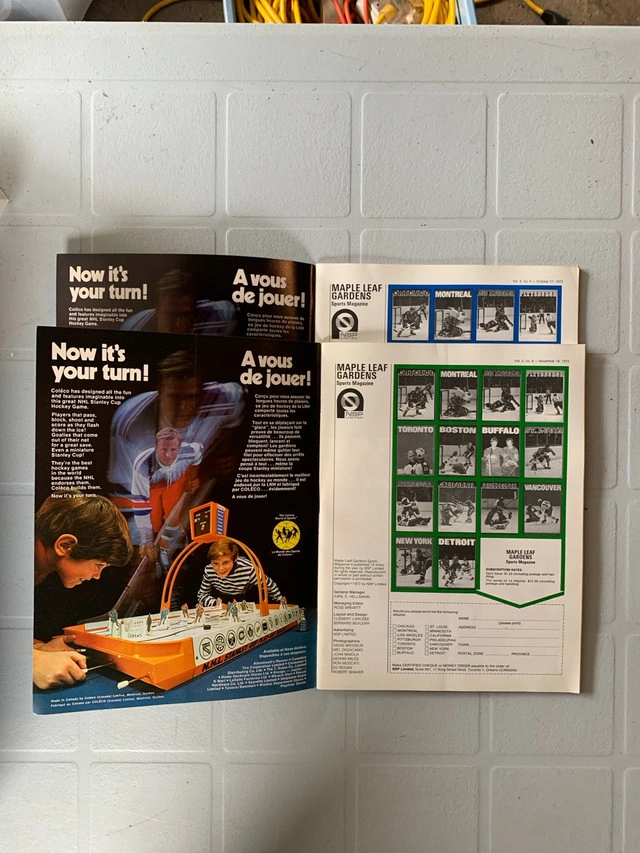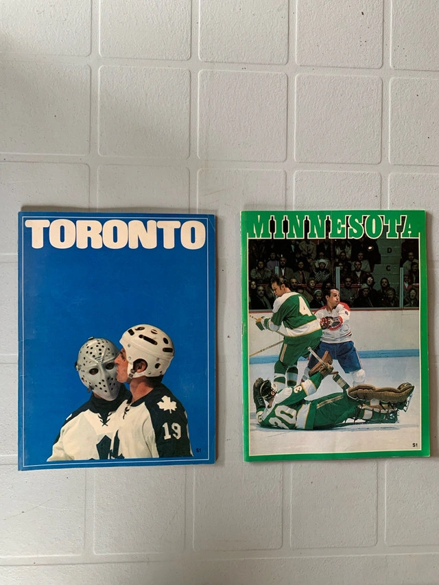 I'm offering two vintage hockey programs featuring the Toronto Maple Leafs and Minnesota North Stars. These programs are from the early 1970s and are in good condition for their age, showing some wear and tear. A fantastic addition to any hockey memorabilia collection! If the ad is up, then it's available!