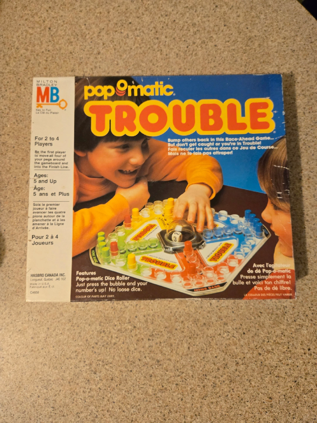 Selling a classic Milton Bradley Trouble game! This fun, family-friendly game is perfect for 2 to 4 players, ages 5 and up.