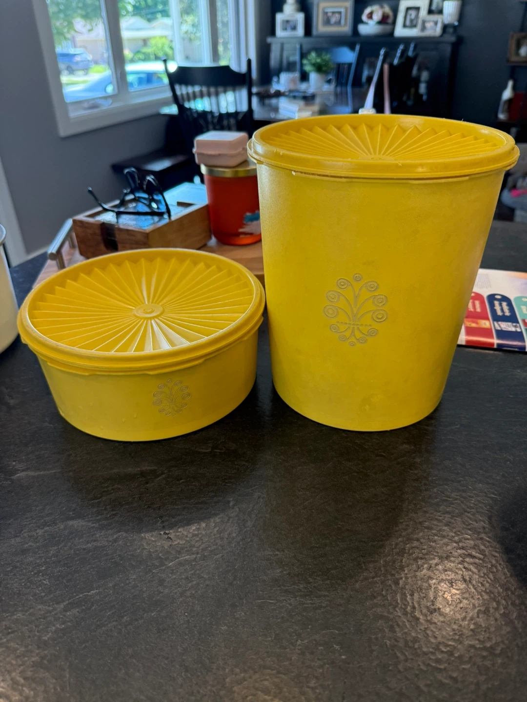 Selling a set of vintage yellow Tupperware canisters. These are great for adding a retro touch to your kitchen! They are in good condition and ready for a new home