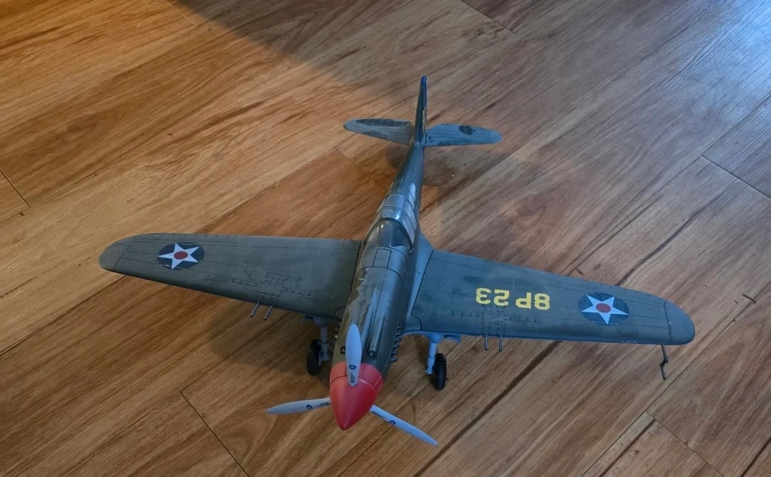 20Selling a vintage U.S. Army P-40 Warhawk airplane model. It has a grey body with red nose and U.S. Army logo on the wings. Great for collectors or aviation enthusiasts! P-40C 33rd Pursuit Squadron, U.S.A. 1941 (ACADEMY 1/72) P-40C 33RD PURSUIT SQUADRON USA, 1941