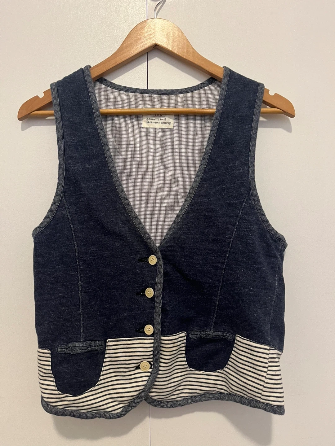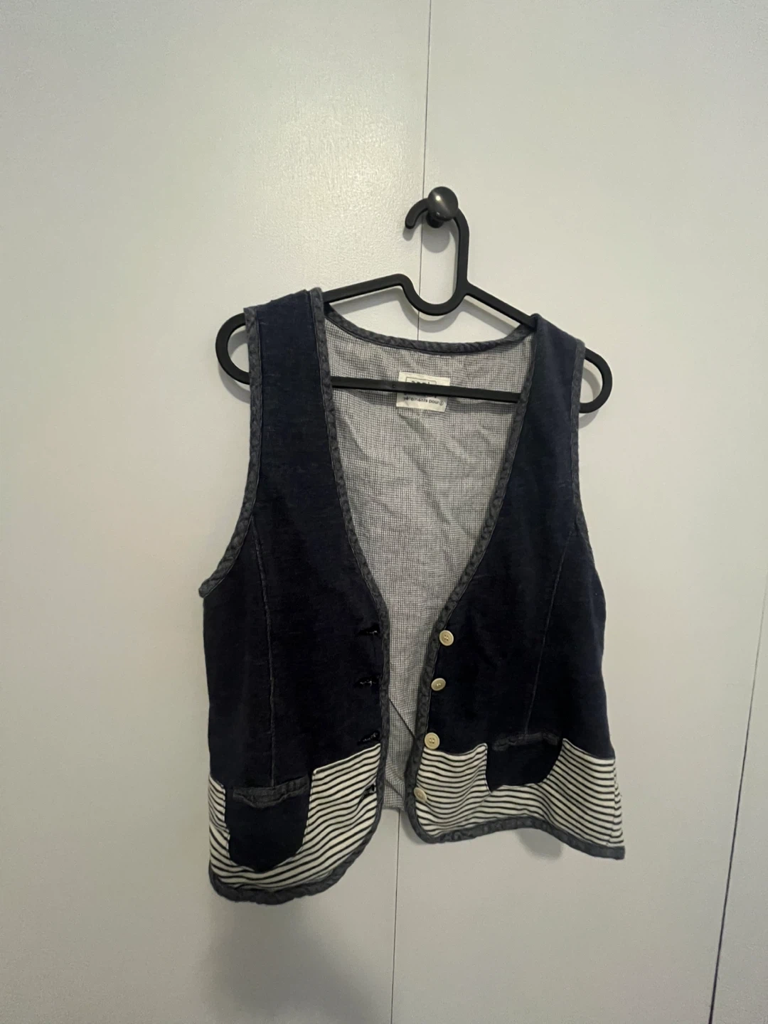 65A cute vintage vest! a dark blue color with striped pockets. Perfect for layering or adding a touch of style to any outfit