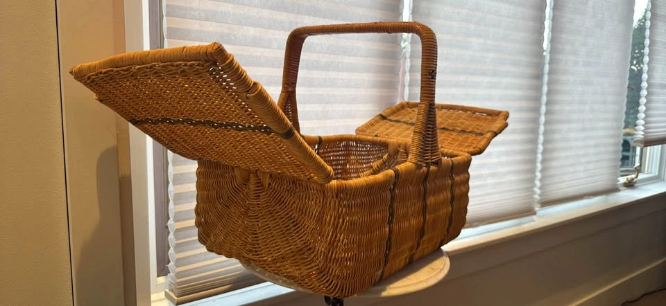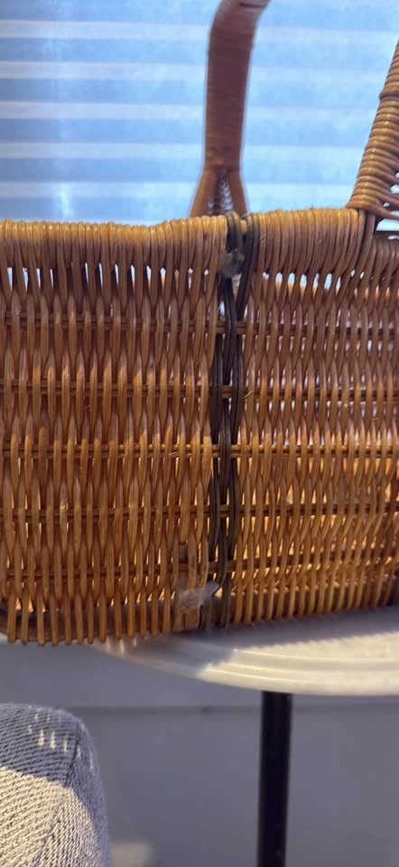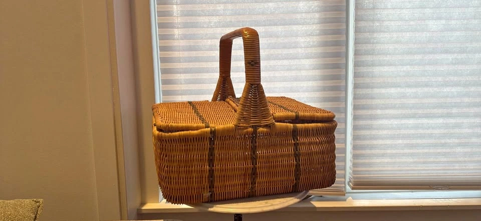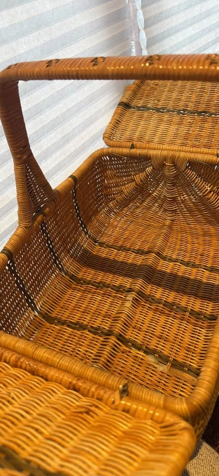 Vintage picnic basket. Some small glue spots (see photos). Great for picnics or even storage of crafting supplies.