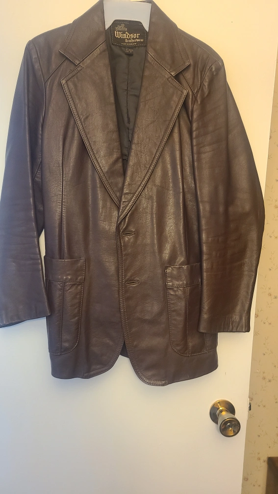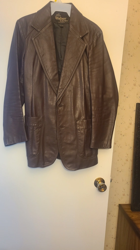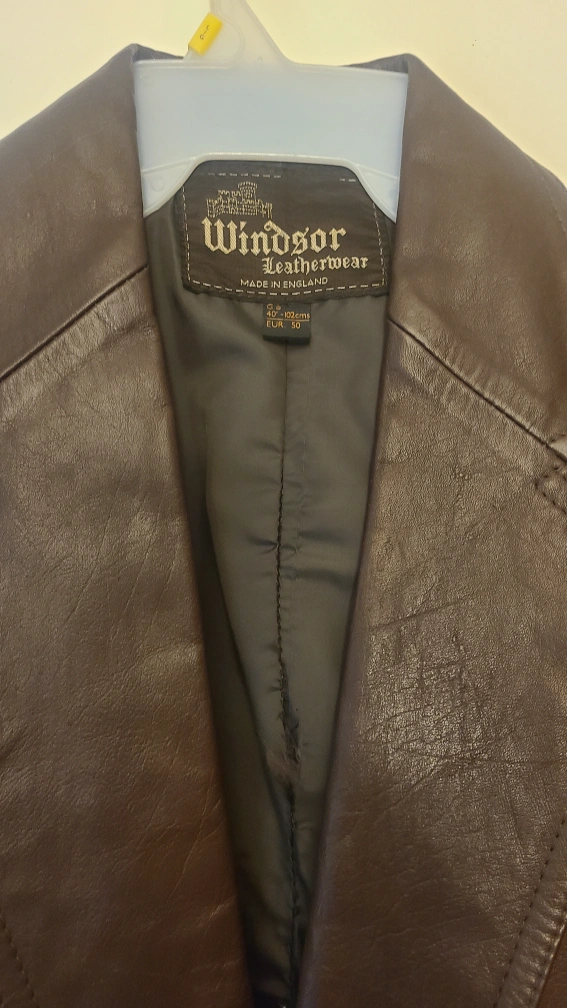 10Brown leather jacket with two front pockets. Size 42 Regular, EUR 50. Made in England.