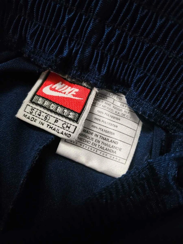 15Relive the 90s in style and comfort with these original Nike Swoosh tear-away pants. Built for performance and designed for quick changes, these vintage track pants are a true sportswear staple. Snap buttons down each leg for instant versatility. Original size: S Measurements: Waist: 11.5″ Inseam” 30.5″ Front rise: 9.25″ Thigh: 13.75″ Knee: 11″ Hem: 8″ 100% Polyester Excellent Condition The elastane waistband can stretch up to 20 inches Instagram: @theheirloomstore_ We accept Interac EMT, credit cards (Visa, American Express, Mastercard), debit cards, or PayPal—all processed securely. For flexible payments, use Afterpay to split your purchase into 4 interest-free installments. No fees, no interest—just select Afterpay at checkout for a more convenient way to shop. We offer free shipping for customers in Canada and the U.S. For inquiries, text 647-fivehundred-6461. Thanks.