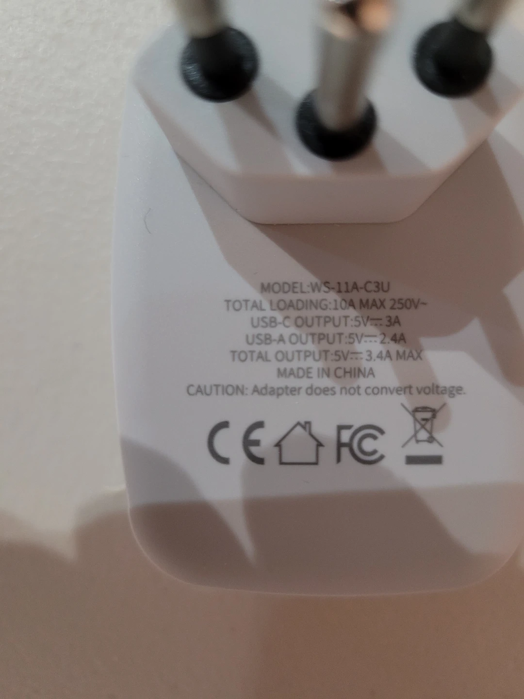 20Selling a VINTAR Switzerland travel plug adapter. It's white and gray, and comes in its original box. Model number is WS-11A-C3U. It has a 10A Max/2 Socket + USB-A 3+ USB-C.
