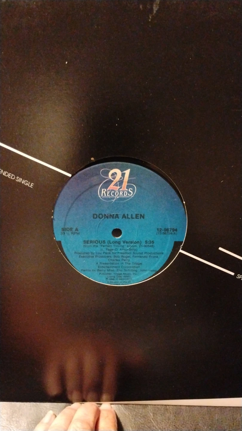 51Selling a collection of vinyl records: Sugarhill Gang - Rapper's Delight, Teena Marie - Lovergirl, Donna Allen - Serious, and Gowan - A Criminal Mind