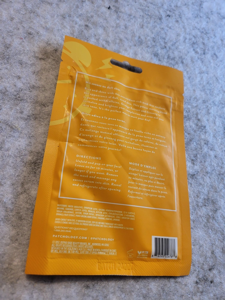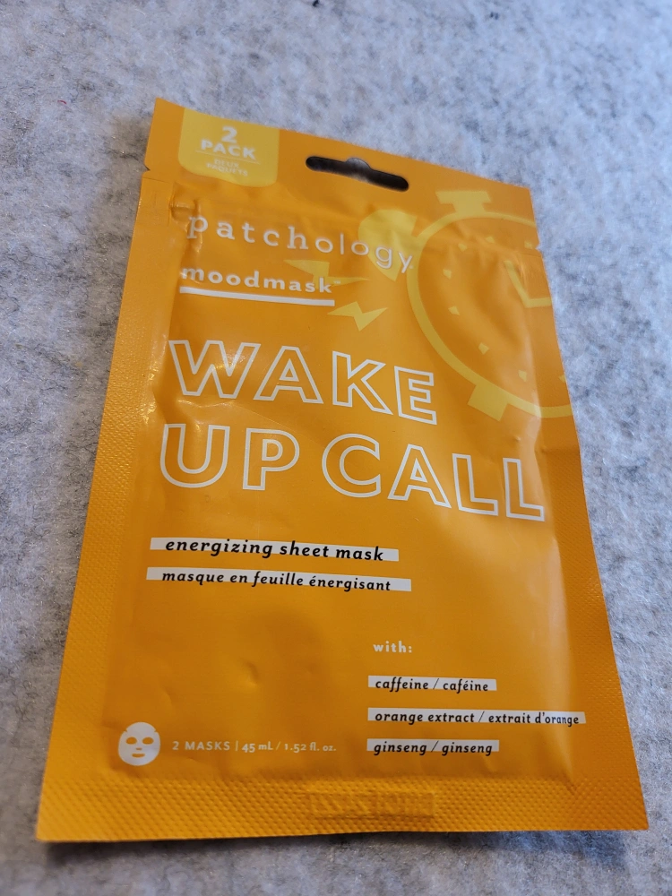 Get ready to shine with Patchology's Wake Up Call energizing sheet mask! This 2-pack of masks is infused with caffeine, orange extract, and ginseng to revitalize and brighten your skin. Each mask contains 45 mL / 1.52 fl oz. Perfect for starting your day with a boost!