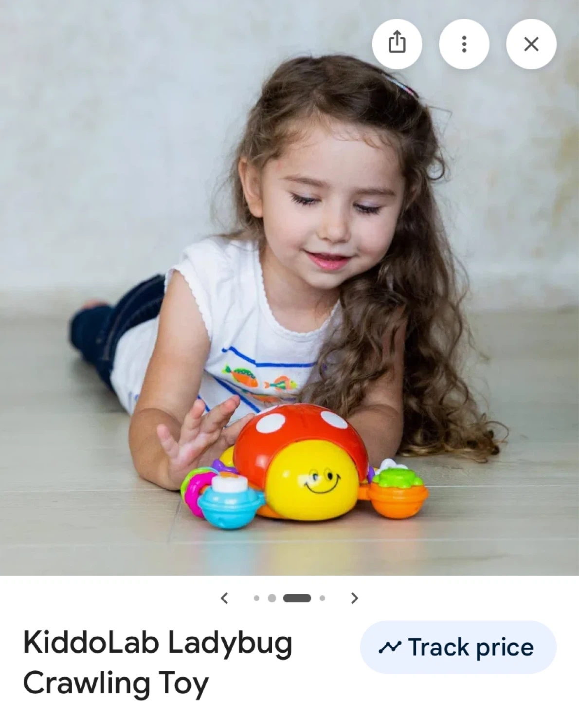 This KiddoLab Ladybug Crawling Toy is designed to entertain little ones. It features colourful spinning wheels and a rattling sound. The toy encourages crawling and sensory exploration for babies and toddlers.