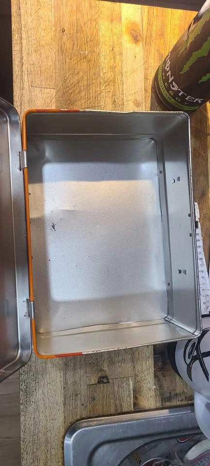Virgin mobile metal lunch box with flames, has some dents and dings but overall decent shape 5 bucks takes it