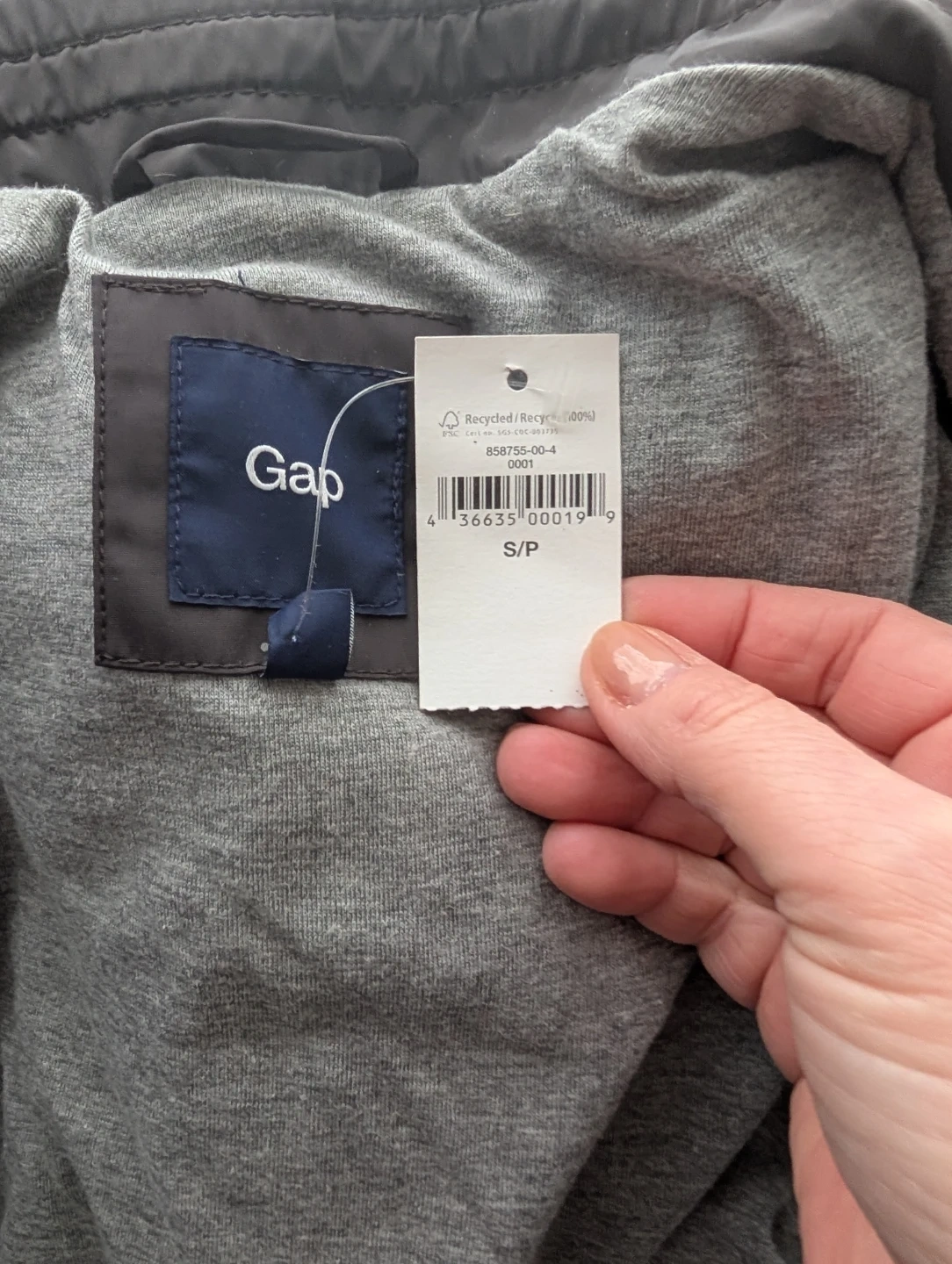 This is a black puffer vest from Gap. It's made with recycled materials. A great layering piece for cooler weather!