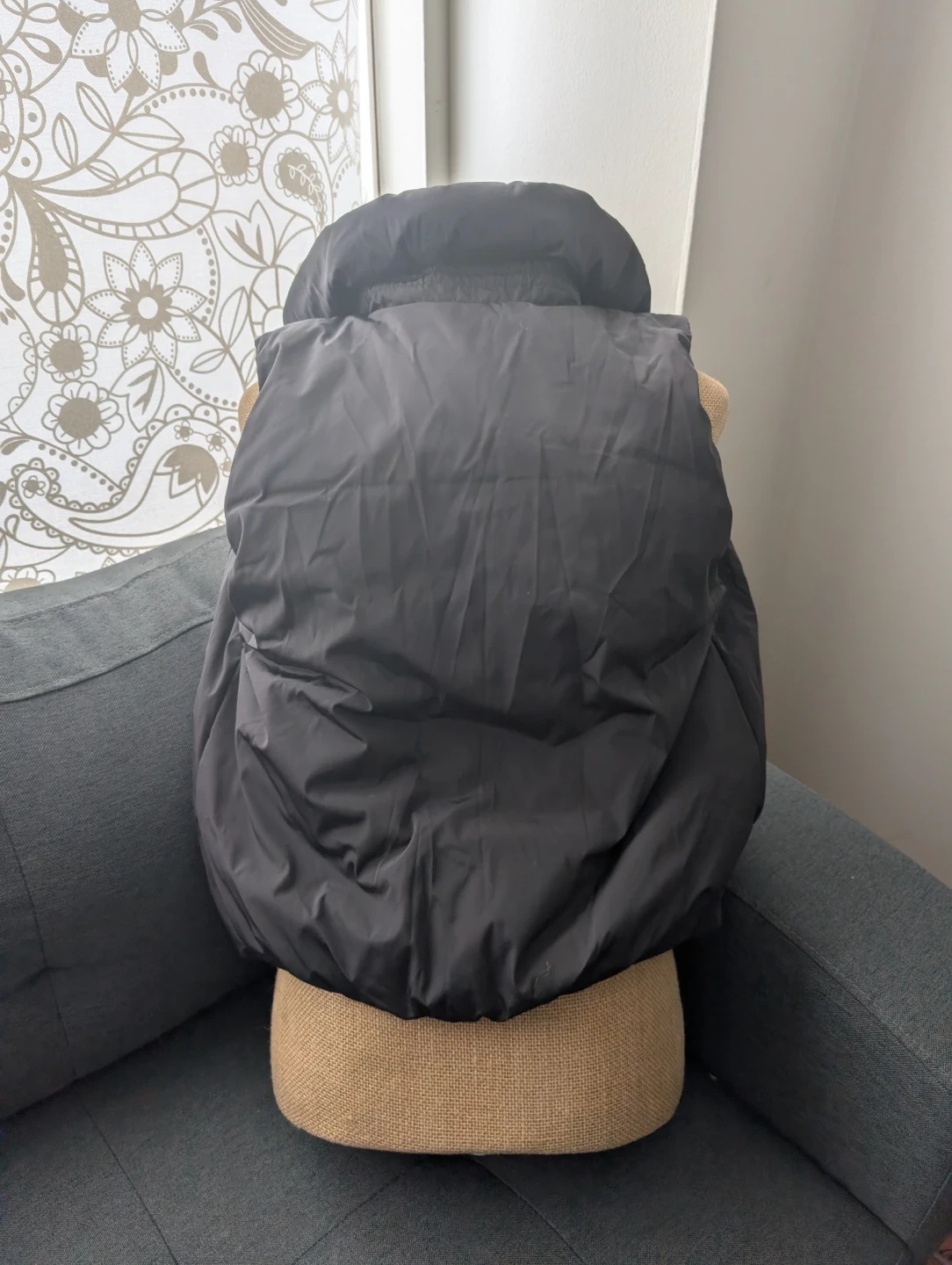 This is a black puffer vest from Gap. It's made with recycled materials. A great layering piece for cooler weather!