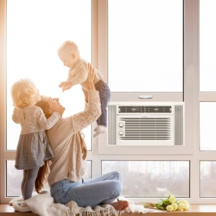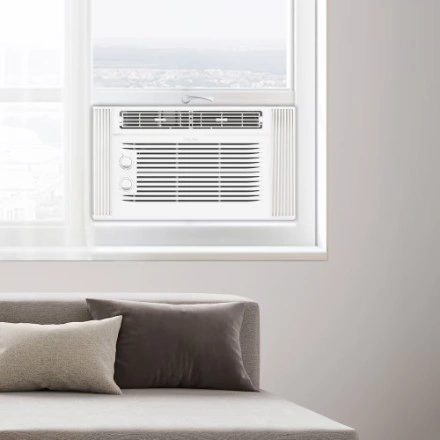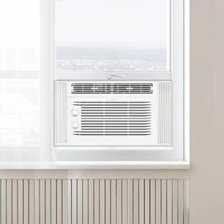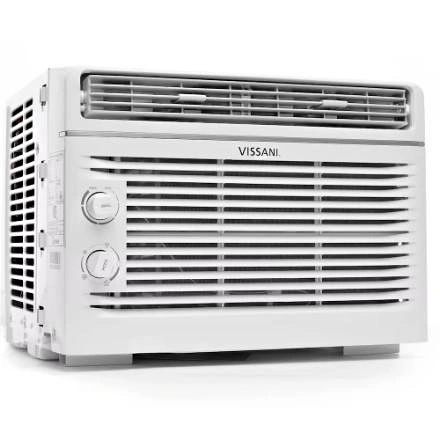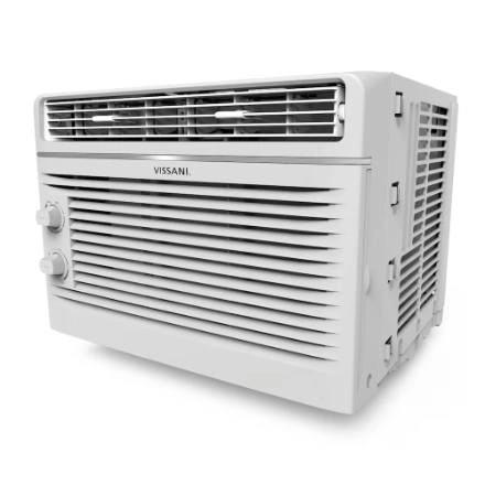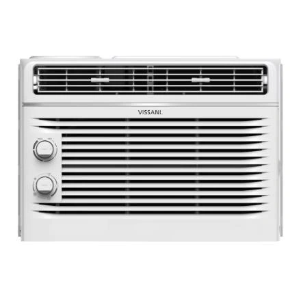10The Vissani 5,000 BTU window air conditioner boasts a sleek design and user-friendly controls with variable speeds and modes for customized comfort. It efficiently cools rooms up to 150 square feet and offers 7 temperature settings, 2 cooling speeds, 2 fan-only speeds, and two-way air direction. Installation is easy with the included kit and instructions, fitting windows 23''-36'' wide and at least 13'' high. It features mechanical controls and a removable, washable air filter. The unit guarantees a comfortable environment by effectively cooling every corner of your room. - Efficiently and quickly cool spaces up to 150 square feet (e.g., a 15' x 10' room), ensuring easy comfort. - Offers 7 temperature settings, 2 cooling speeds, 2 fan-only speeds, and 2-way air direction to deliver the ideal cooling experience every time. -Includes user-friendly mechanical controls for quickly setting the time, temperature, and mode, along with a removable and washable air filter. -Easily install in your home or apartment's existing window frame. Fits windows 23''-36'' wide and at least 13'' high. 2-Year Warranty (Parts and Labour)