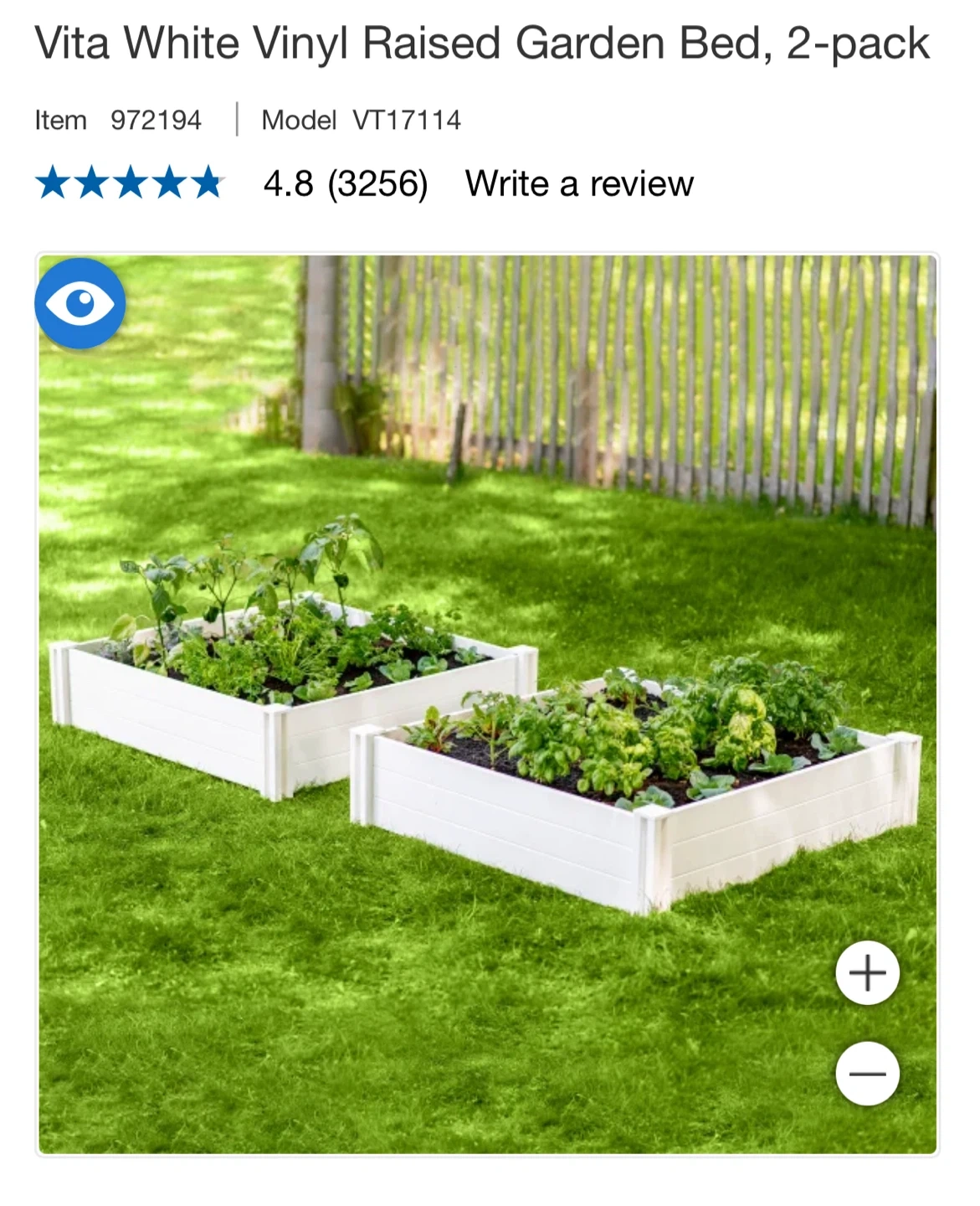 70Selling a Vita White Vinyl Raised Garden Bed, comes as a 2-pack. Model number is VT17114. Perfect for starting your own little garden! It is used and not in a box