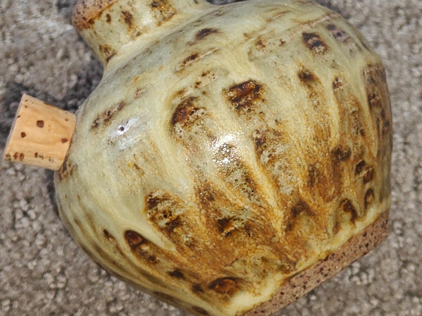 I am selling an Artisan Pottery Salt & Pepper Shakers - Rustic Glaze in used, excellent condition. No chips or cracks. Discover this exquisite set of artisan-made ceramic salt and pepper shakers. Each piece is hand-thrown and boasts a unique, textured glaze with warm brown and cream tones, reminiscent of natural stone. Signed by the artist on the bottom, these are not just functional, but also beautiful pieces of art for your home. The set includes cork stoppers for easy refilling, with clear 'S' and 'P' markings. A wonderful find for those who appreciate handcrafted items, unique pottery, unique home decor, anyone looking for distinctive kitchenware.