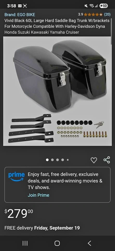Vivid Black 60L Large Hard Saddle Bag Trunk W/brackets