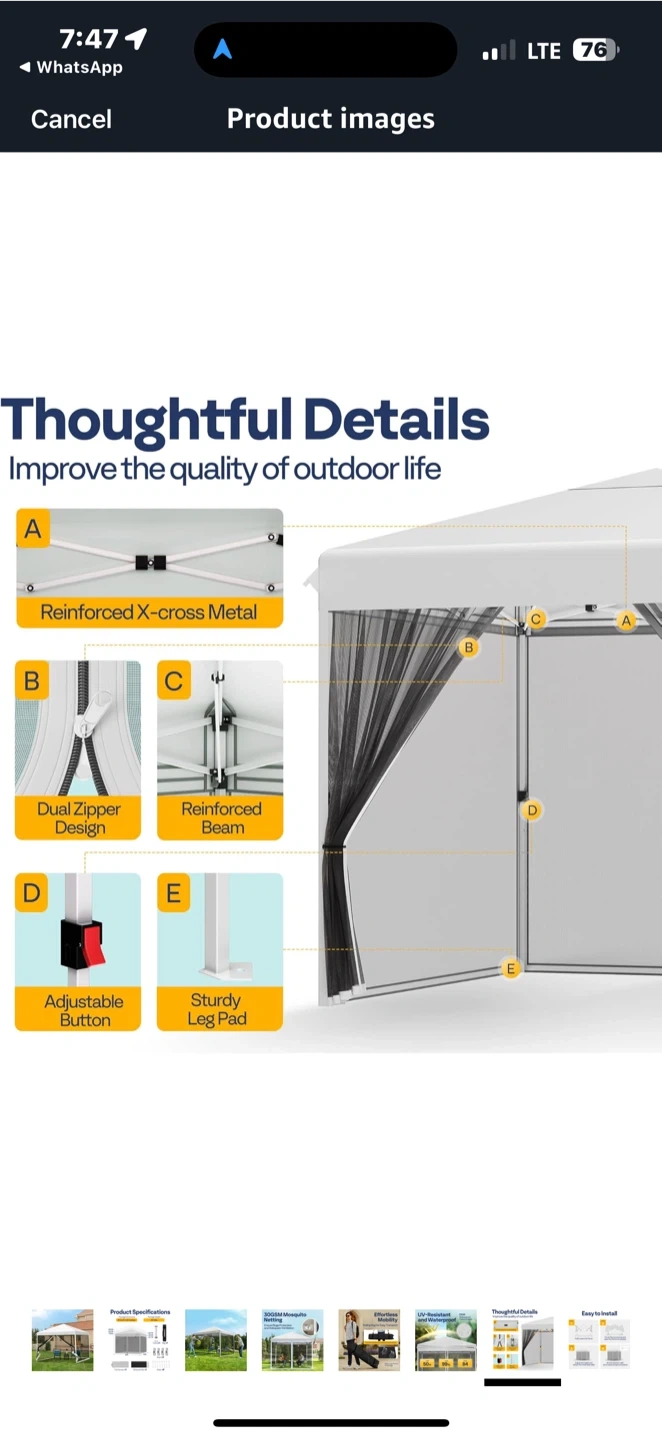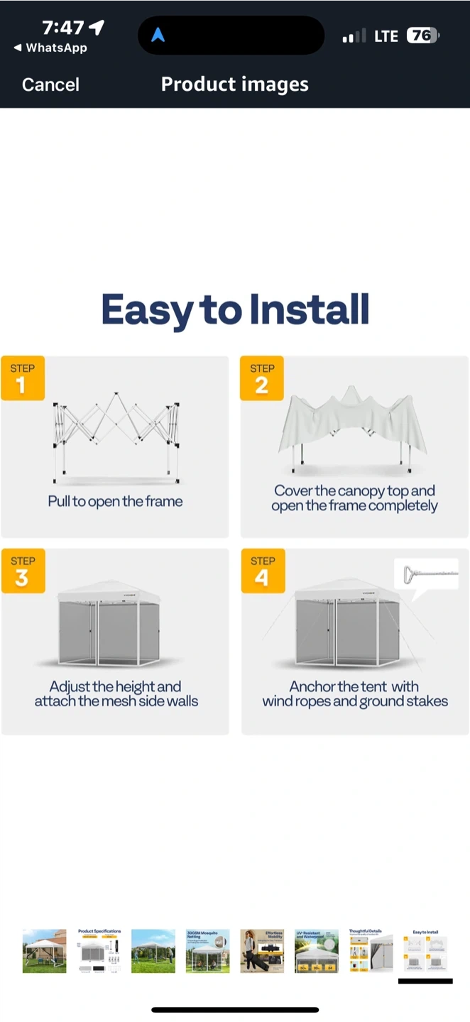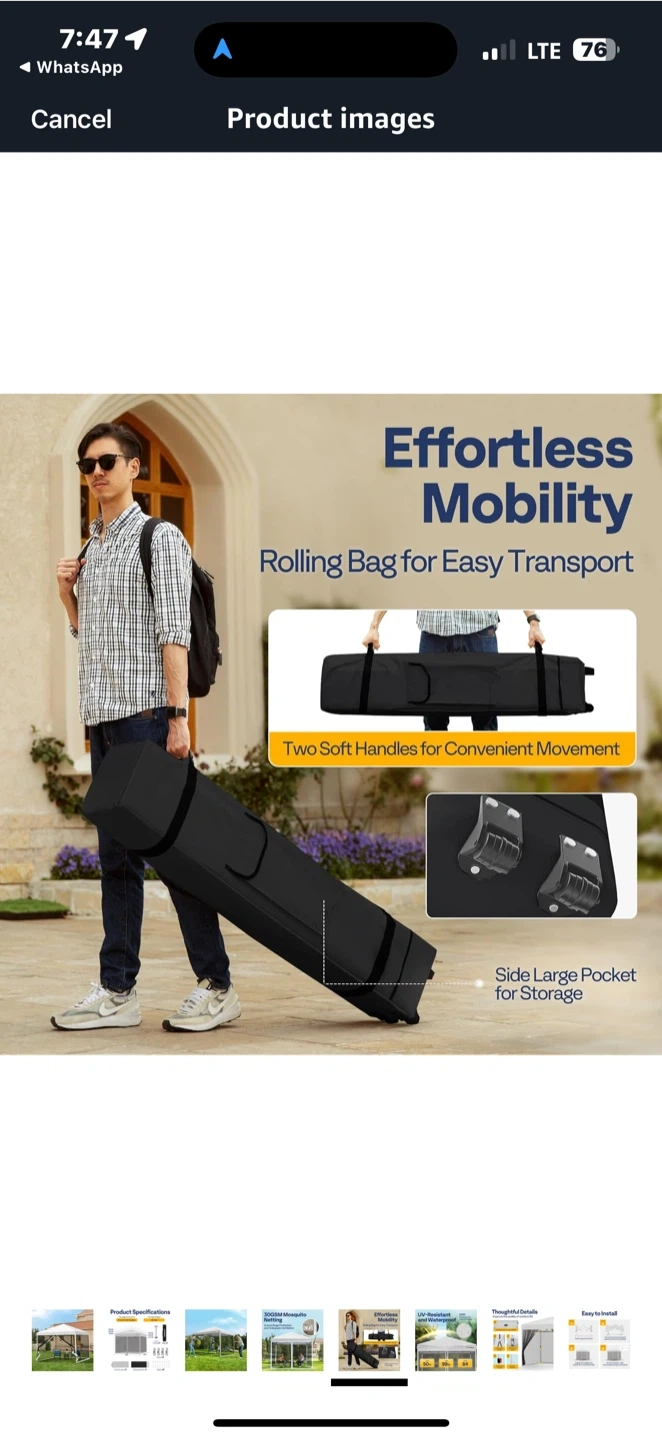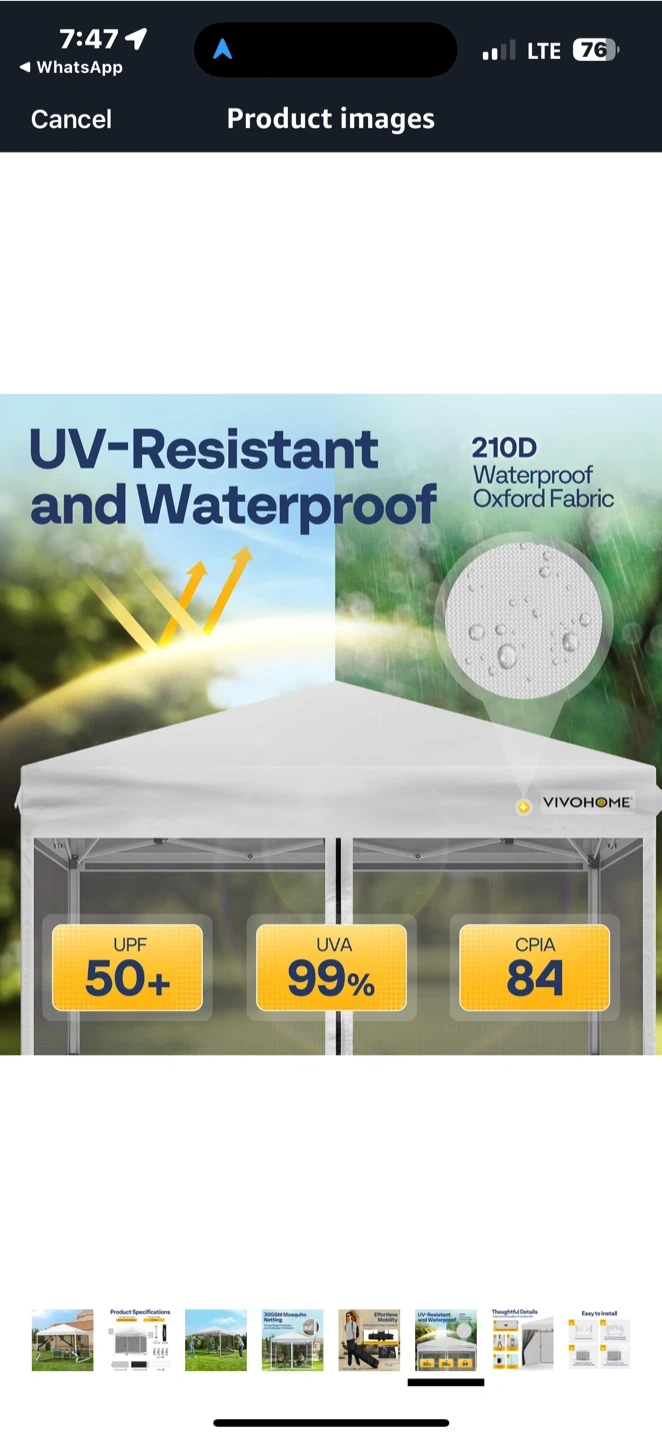 Selling a VIVOHOME 8x8 ft pop-up canopy tent, perfect for outdoor gatherings! It comes with mosquito netting to keep those pesky bugs away. Key features: - Package dimensions: 47.6 x 9.1 x 9.1 inches - Package weight: 33.1 lbs - Includes frame, bag, rope, stakes, top canopy, and mosquito net - Effortless mobility with a rolling bag for easy transport