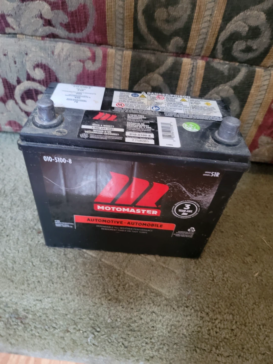 Buy & SellMotomaster 010-5100-8 Automotive BatteryMotomaster 010-5100-8 Automotive Battery$90This is a Motomaster 010-5100-8 automotive battery. It's a Group 51R size. It includes a 3-year warranty.WHERE TO MEETCheck LocationView MapSELLERKoelCalmar150 reviews0 chats·0 favorites·3 viewsSEND CHAT TO SELLERHi Koel! I’m interested in your listing.Hi Koel! I’m interested in your listing.Get the Karrot app to chatSign In to chat