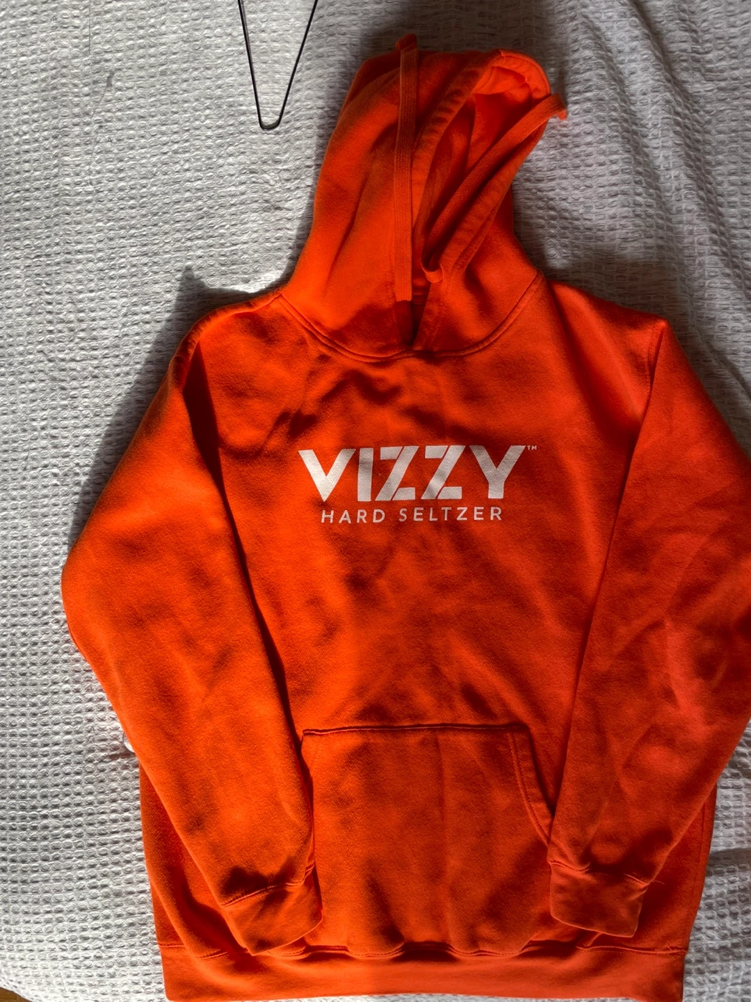 Cozy up with this bright orange Vizzy Hard Seltzer hoodie! It's perfect for casual wear or showing off your love for your favourite drink. A great addition to any wardrobe!