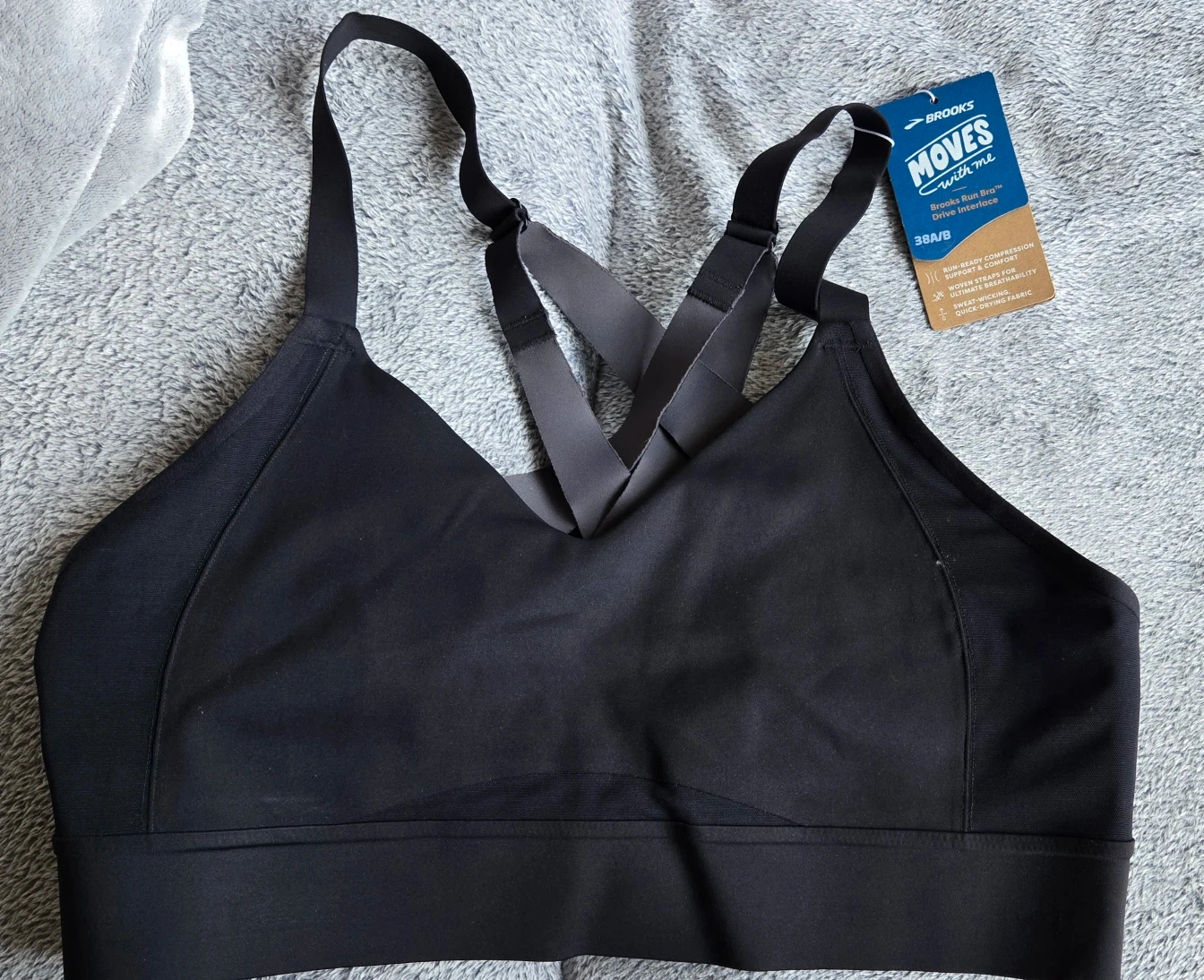 Black Brooks Drive Interlace Run Bra in size 38A/B.