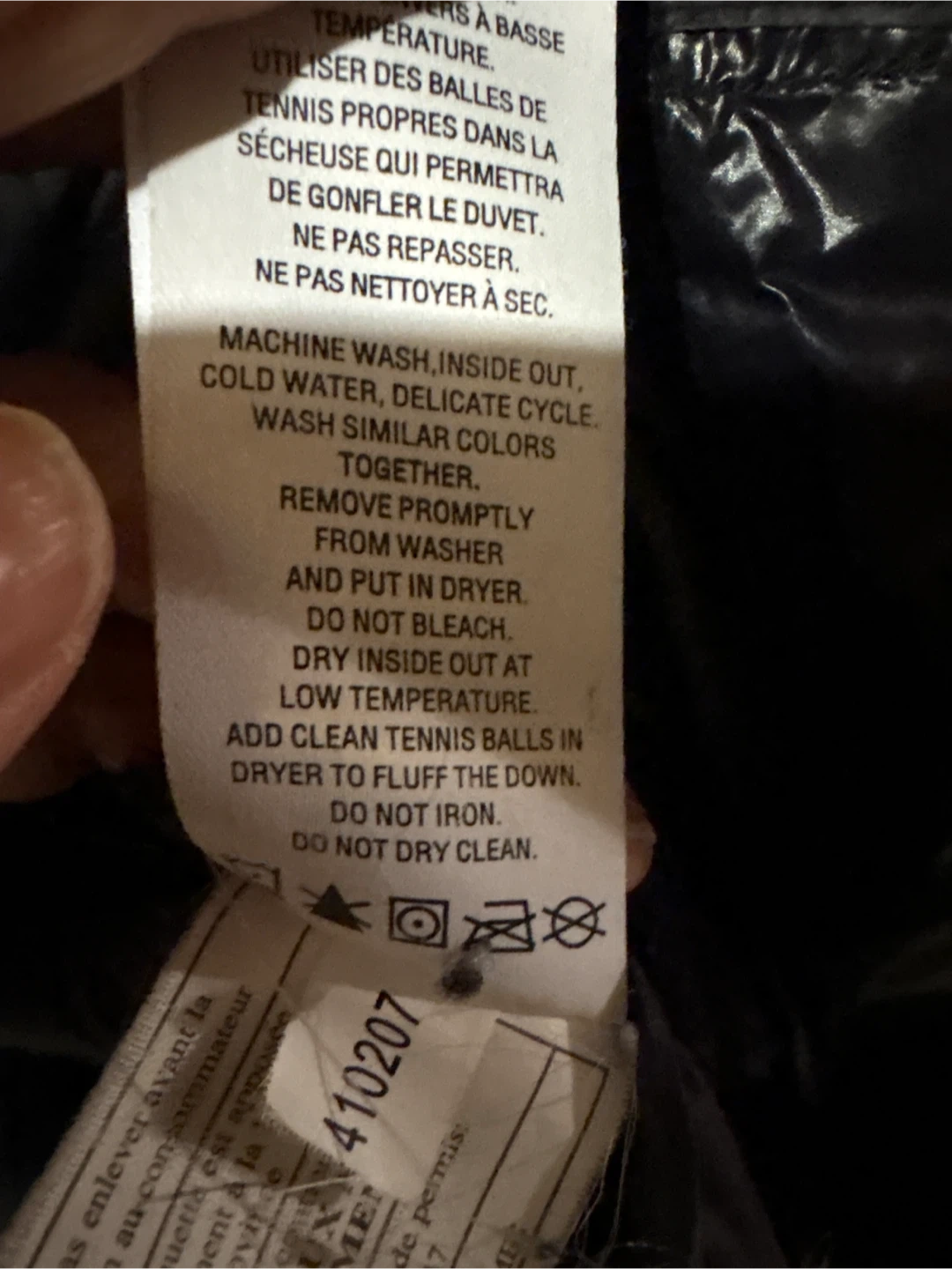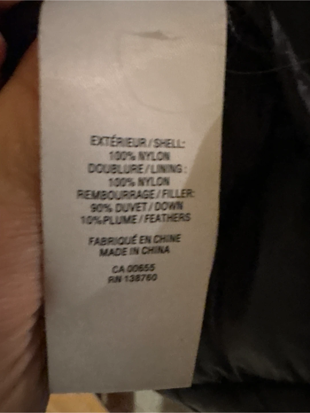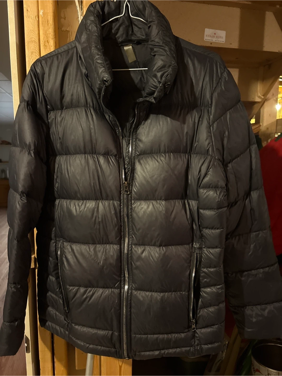 Almost new black puffer jacket with sleek design, worn only a few times, **filled with 90% duvet/down and 10% plume/feathers. The shell and lining are 100% nylon. A very warm, lightweight, comfortable jacket for your outdoor lifestyle, designed for cold weather with zippered outer pockets and hidden hood in collar …Care instructions included inside jacket with easy care Machine washing inside out with down filling…** Pick up on Chandos Drive in Chicopee area of South Kitchener N2A 4H8