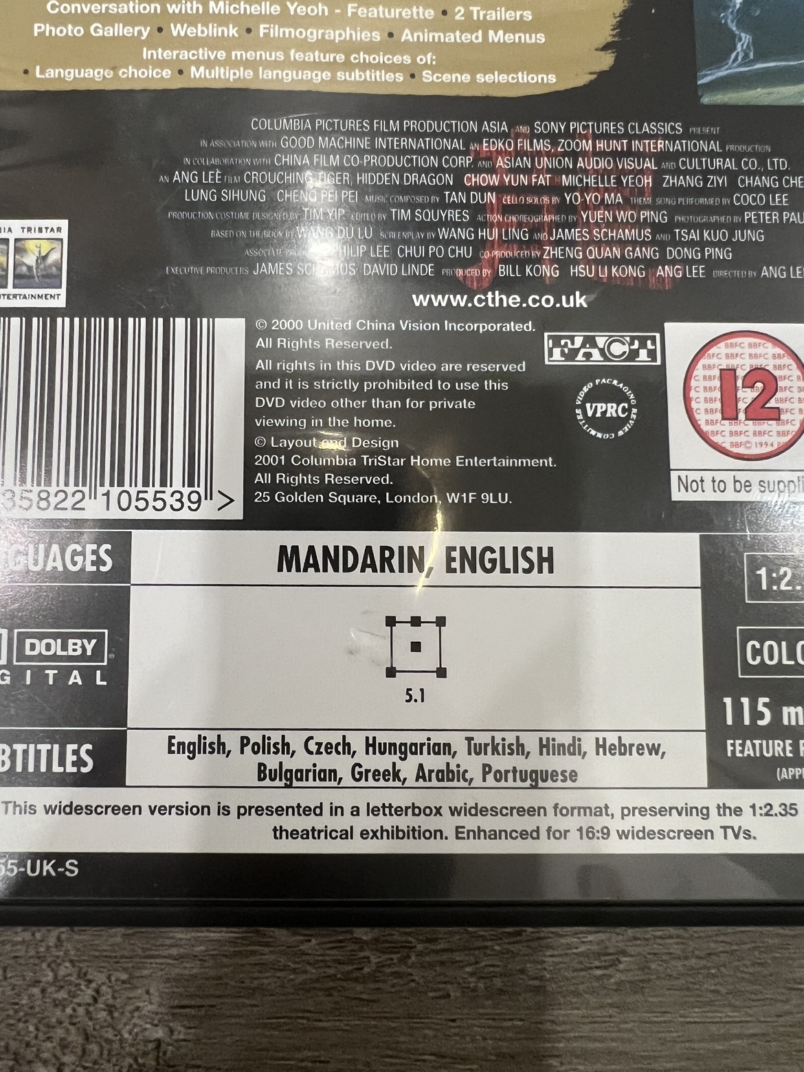 Crouching Tiger, Hidden Dragon DVD PAL 2