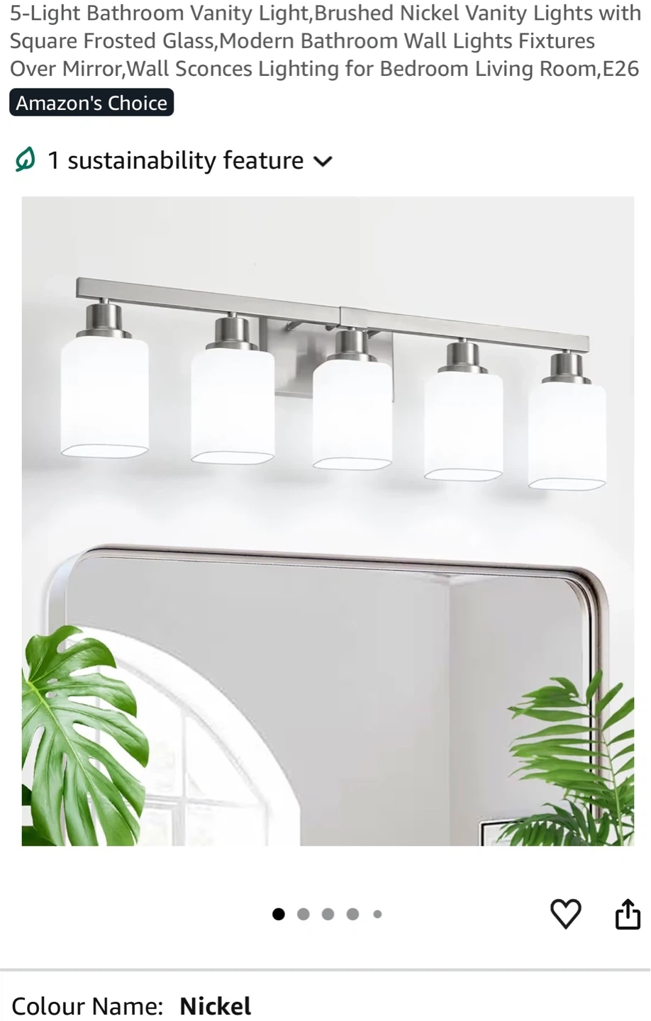 This vanity light fixture features a brushed nickel finish and frosted glass shades. It's designed for E26 base bulbs, with a maximum of 60W per bulb. Bulbs are not included. Measures 29.90in L x 5.75in W x 9.06in H. It can be installed facing up or down.
