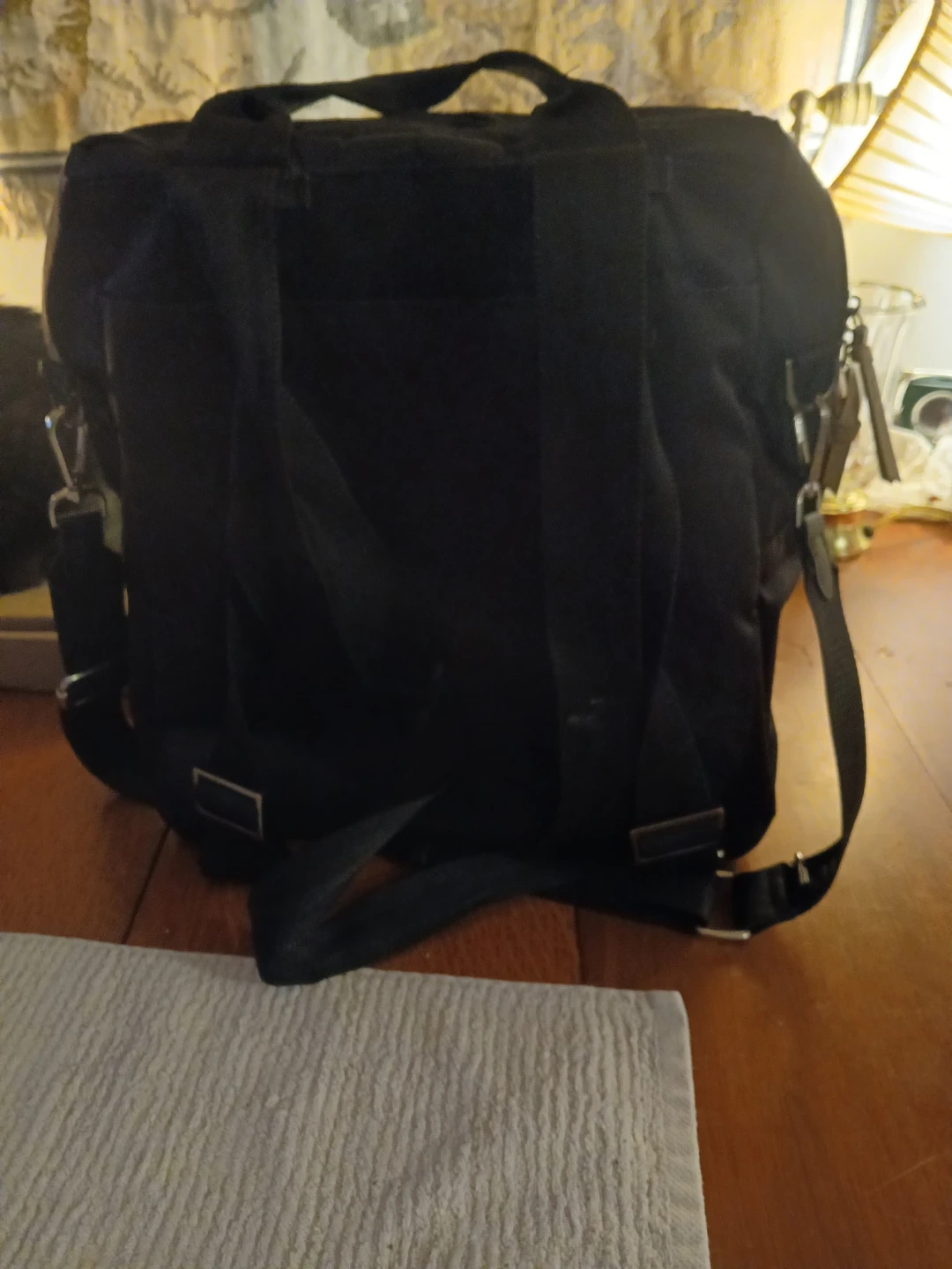 This is a black Jujube backpack. It features multiple interior pockets for organization. It's great for carrying essentials for a day out.