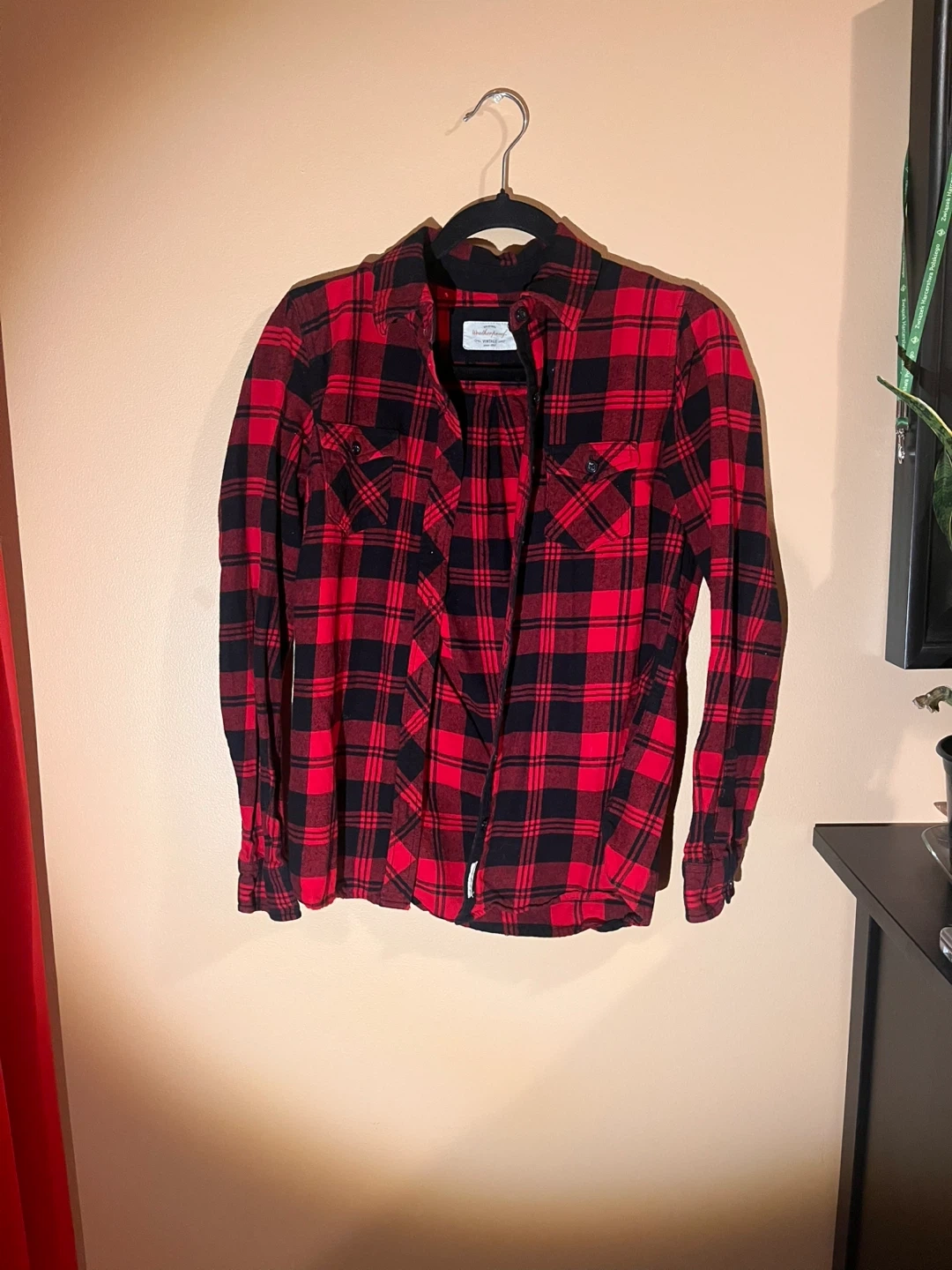 Original Weatherproof Vintage flannel shirt in red and black plaid. Size small. This shirt is great for casual wear.