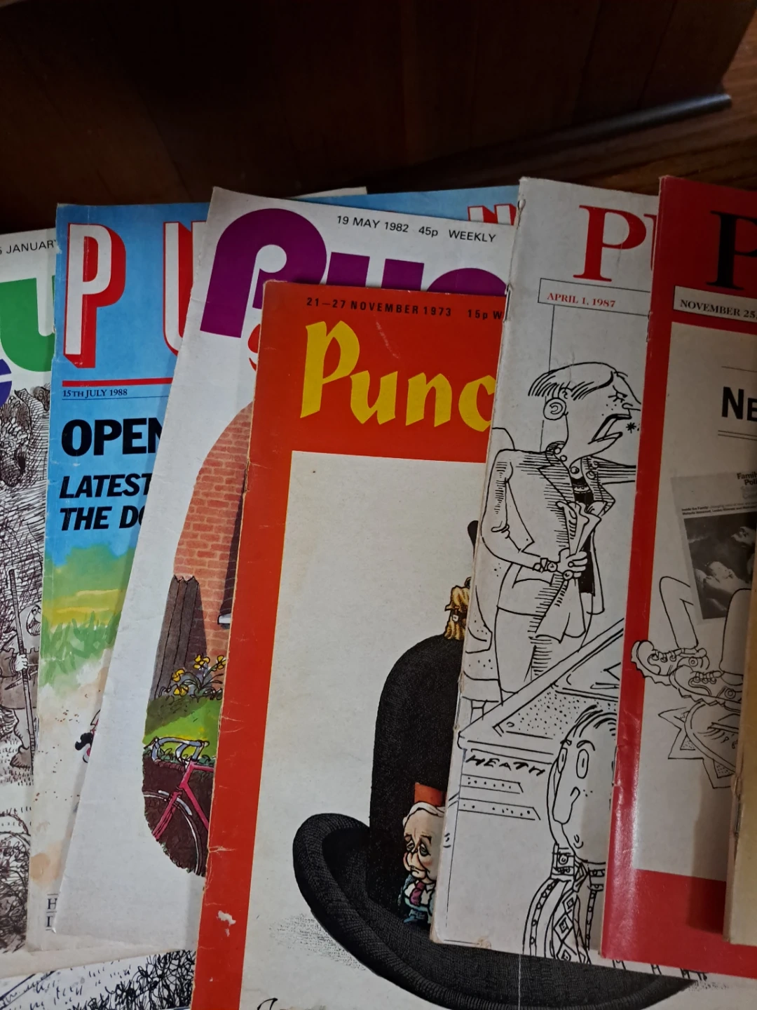 A collection of vintage Punch magazines. These issues offer a snapshot of humour and current events from past decades. Perfect for collectors or anyone interested in satirical British humour.