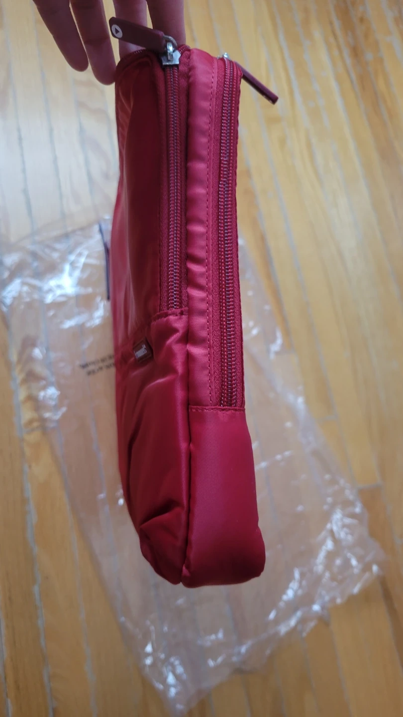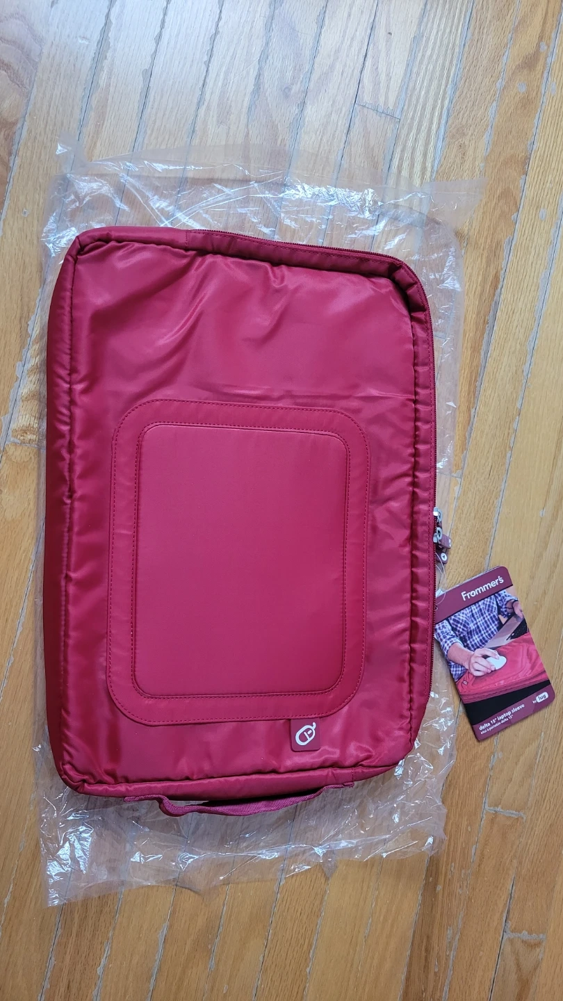 This Lug Frommer's Delta laptop sleeve fits up to a 15" device. It's red with a zippered closure. It's perfect for keeping your laptop protected on the go! Brand new, never been used. With the original tag.