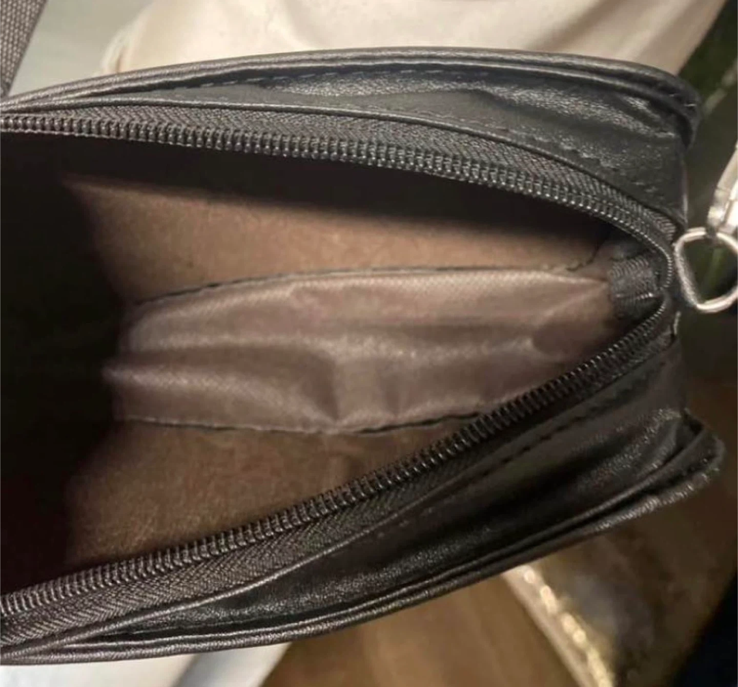 It's got a zippered closure and an adjustable strap for comfort.