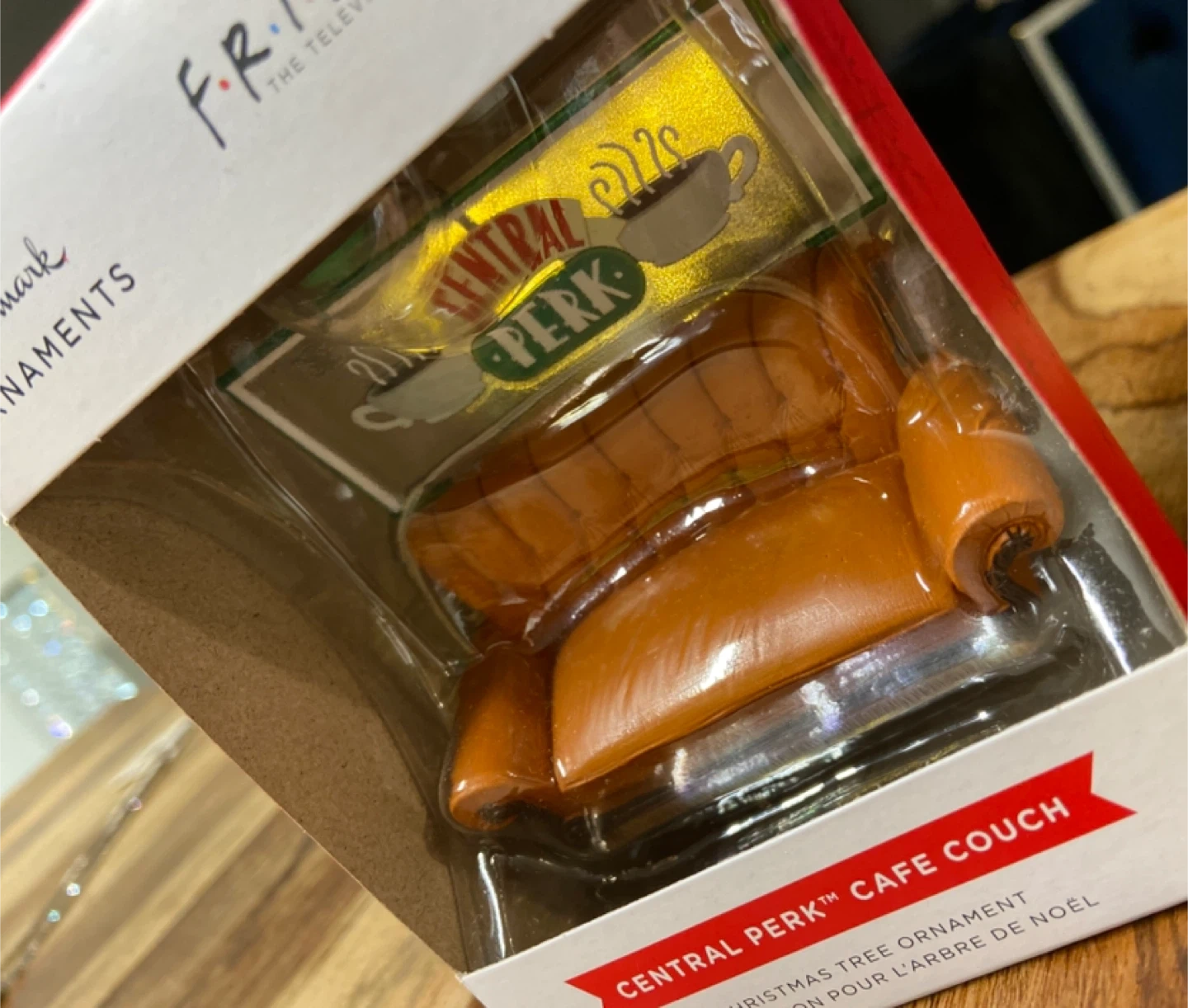 This is a Hallmark ornament featuring the iconic Central Perk couch from the TV series Friends. It's a great addition for any fan's Christmas tree!