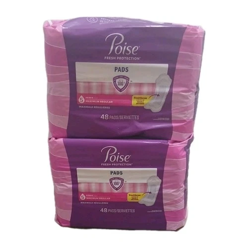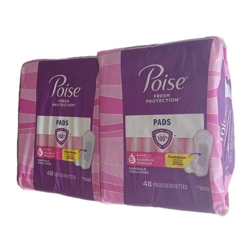 Brand new and factory sealed. Includes: 2 packs, 48 pads per pack, Total: 96 pads. Absorbency Level 5 (Maximum Regular). Designed for bladder leak protection. FreshSense odor control. Discreet, comfortable fit. Great value compared to retail. Ideal for personal use or stocking up. Smoke-free home.