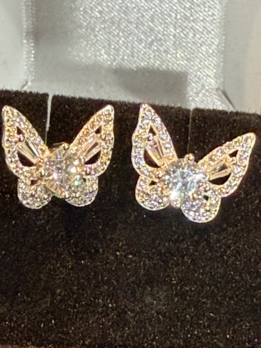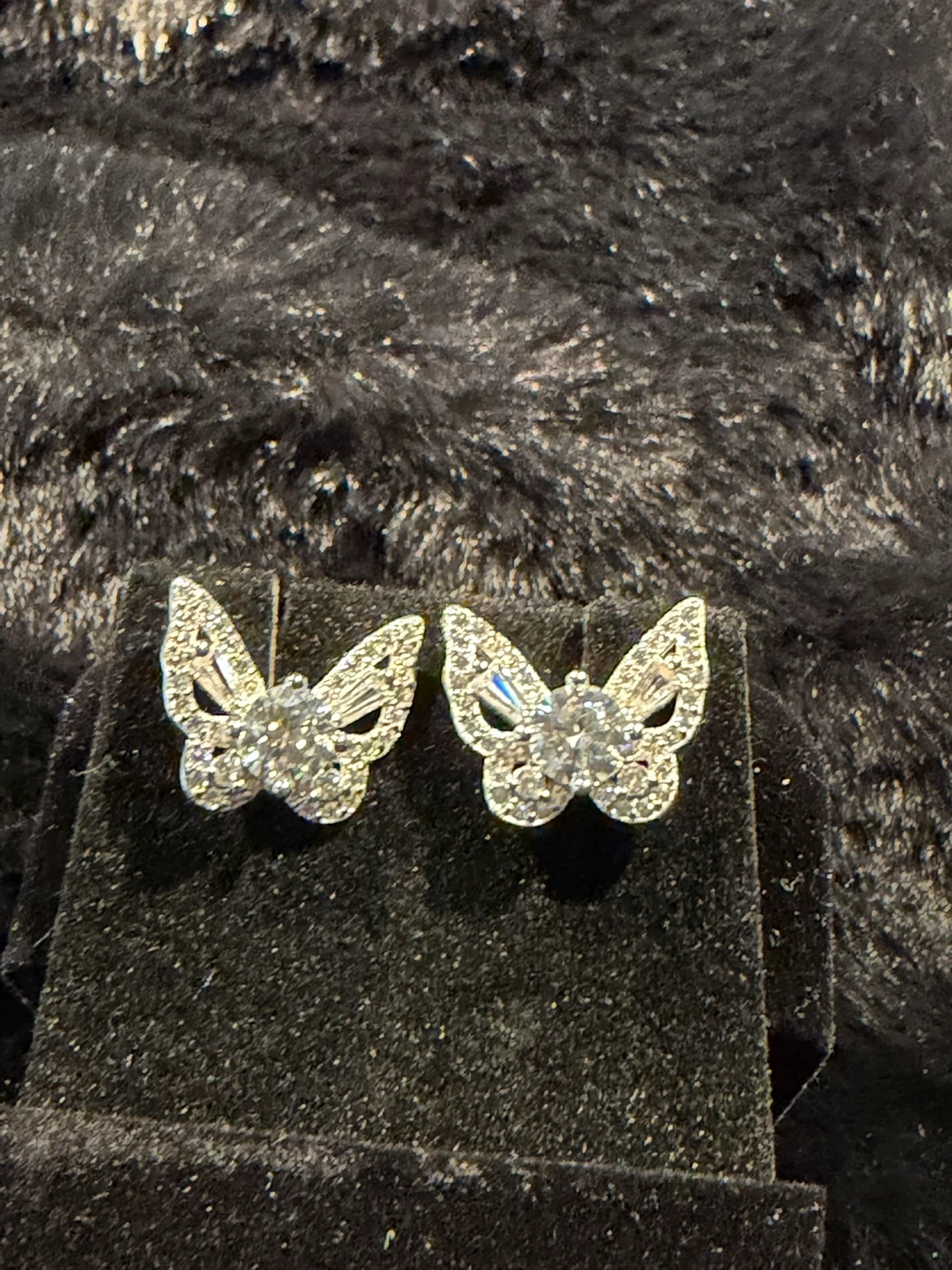 These beautiful butterfly earrings feature rhodium plating with sparkling diamond accents. The approximate total weight of the diamonds is 0.75 carat. They measure approximately 12.8mm x 10.3mm. Perfect for adding a touch of elegance to any outfit!