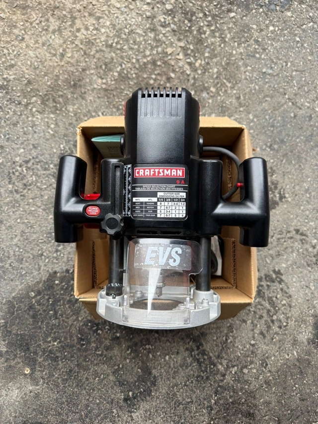 This Craftsman router is in excellent condition and ready for your next woodworking project! It has a 9 amp motor and variable speed control for precision and versatility. The router comes with the original box, manual, and accessories as shown in the photos. Specifications: Brand: Craftsman Amperage: 9 Variable Speed: Yes Condition: Used - Like New. Cash accepted.