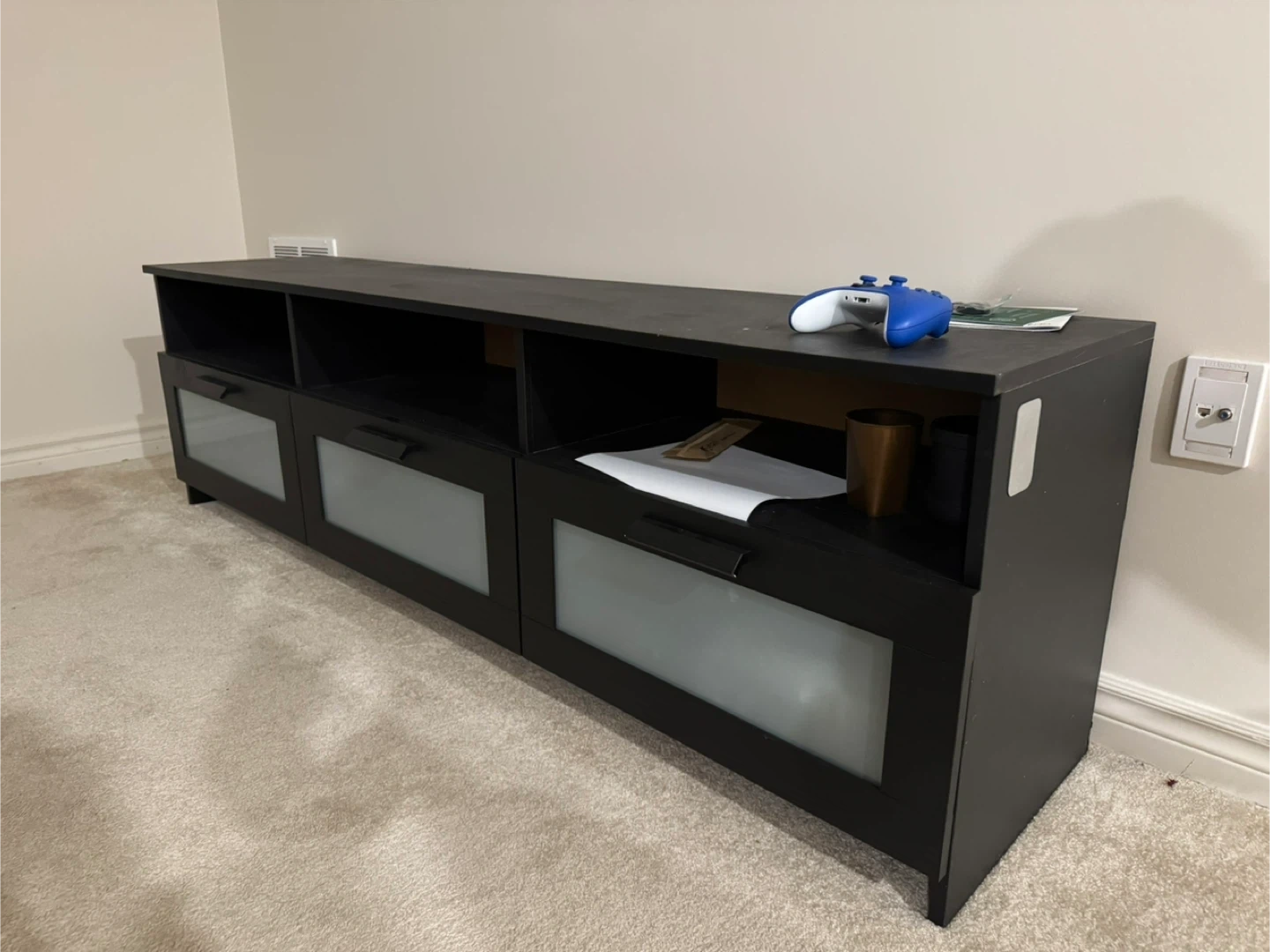 IKEA Black Media Console TV Stand with Frosted Glass Doors
