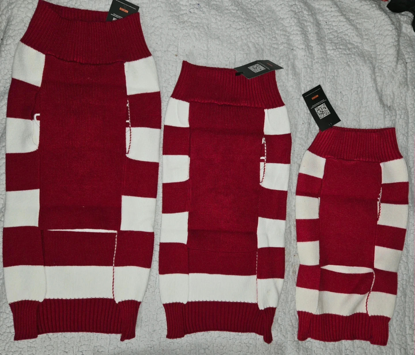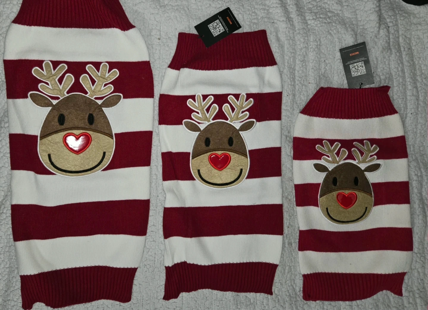 Red & White Striped Dog Sweater with Reindeer-(Sizes L, XL, 2XL)