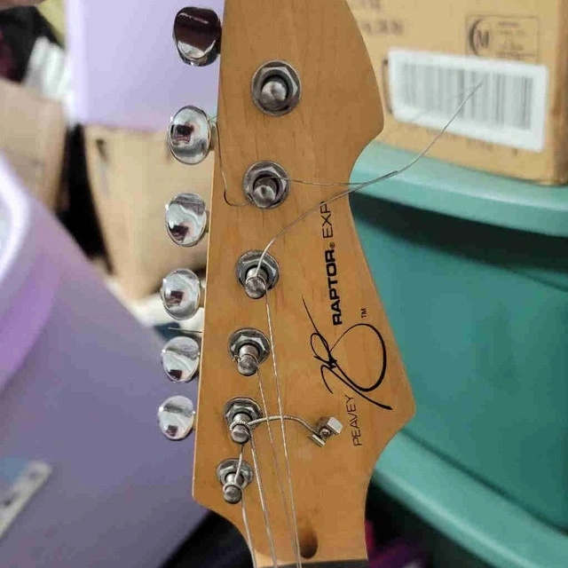 Selling a used black Peavey Raptor electric guitar, great for beginners or anyone needing a reliable instrument. It's well-maintained and in good condition, ready to play. Features a comfortable neck for easy learning. Specs include: Solid Wood Body, Maple Neck, Rosewood Fretboard, 3 Single-Coil Pickups, Volume, Tone, and a 5-Way Switch. Asking $120. If you see this ad, it's still available!
