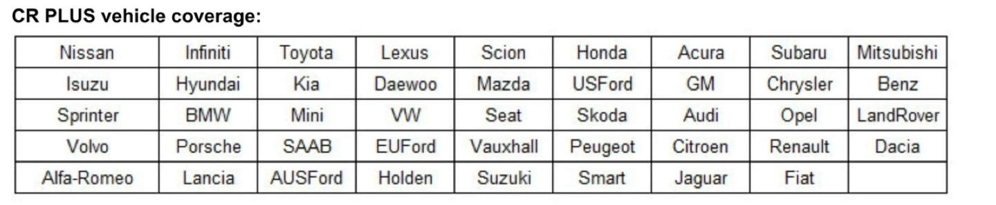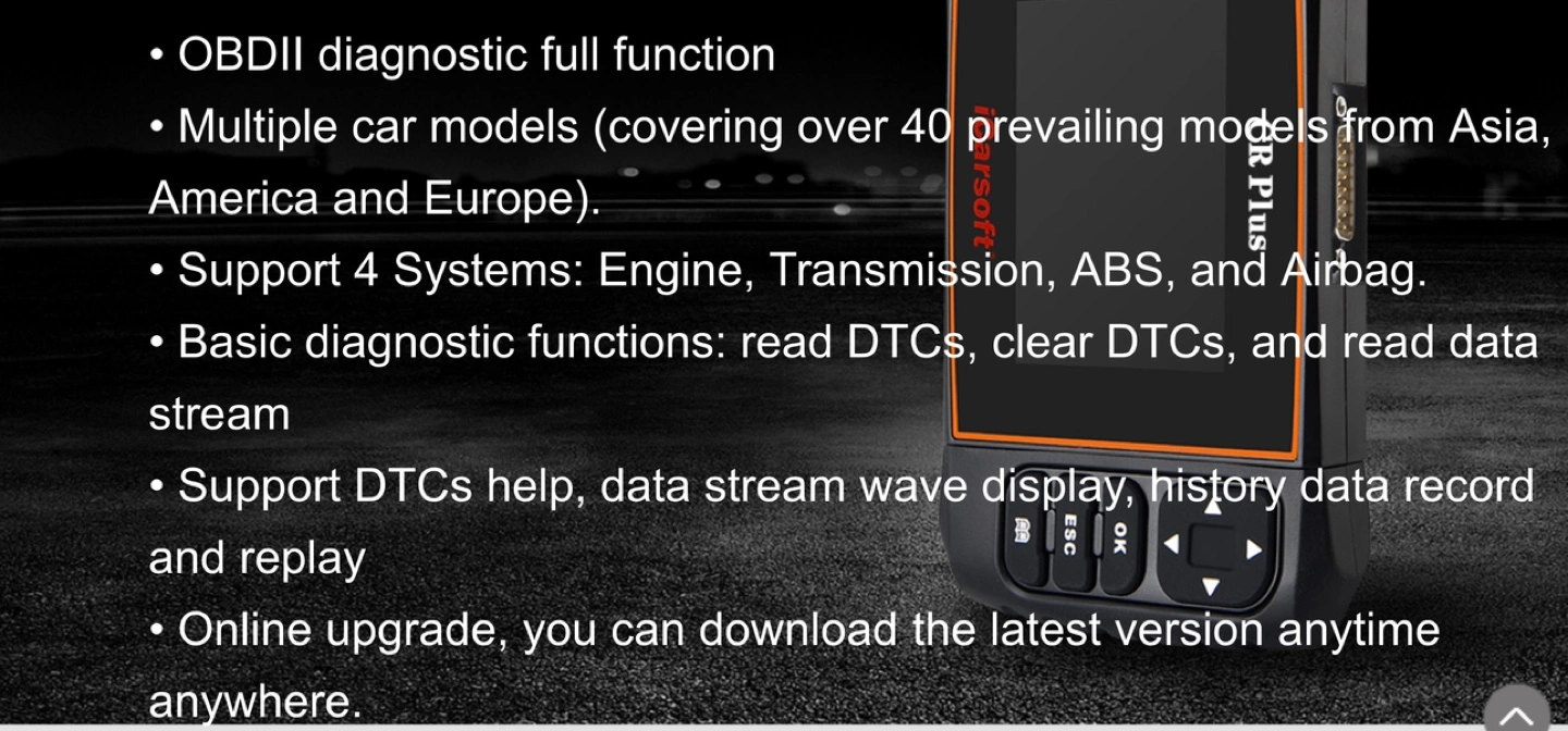 iCarsoft CR Plus is a well-built comprehensive diagnosis instrument by iCarsoft. It's not only including full function of OBDII/EOBD, but also support more function of Four system( Engine, automatic transmission, anti-lock braking system and airbag ) of certain models of car, such as read and clear code, multi languages, data flow picture display, graph. It also includes Electronic Parking Brake (EPB) release, Steering Angle Sensor (SAS) and Oil Service Light resets. View Engine, ABS, SRS along with A/T enhanced data.