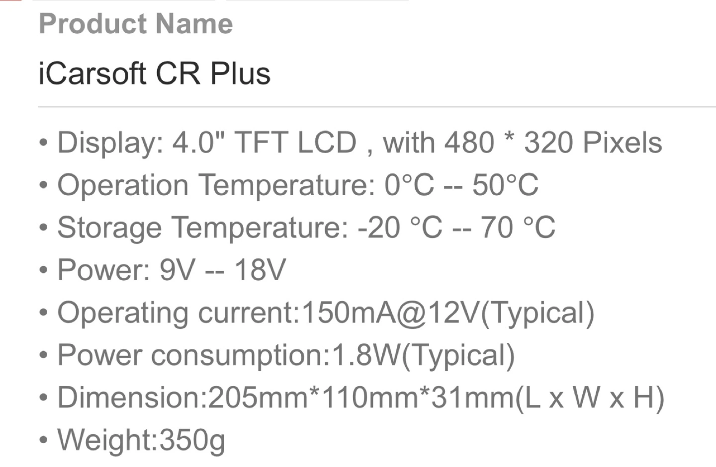 iCarsoft CR Plus OBDII Diagnostic Scanner