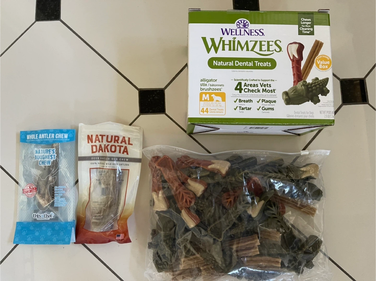 Selling because my dog is too small for these sized treats/chews and can not return.
