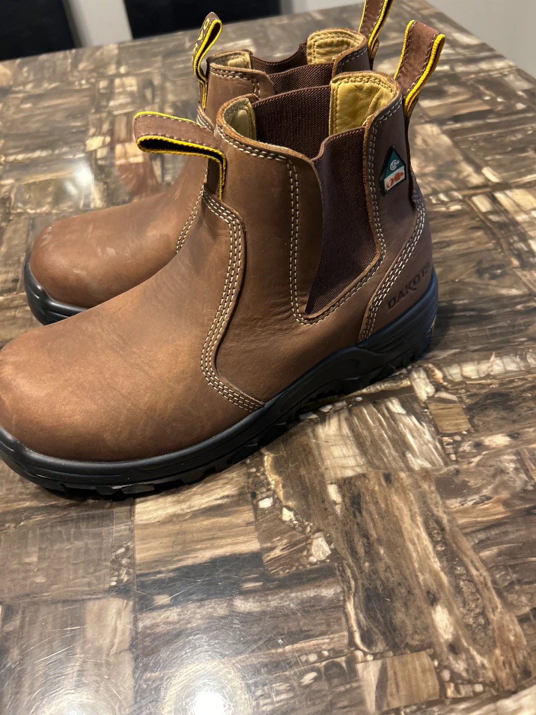 Selling a pair of Dakota work boots in brown leather. They're in good condition and ready for a new job site!