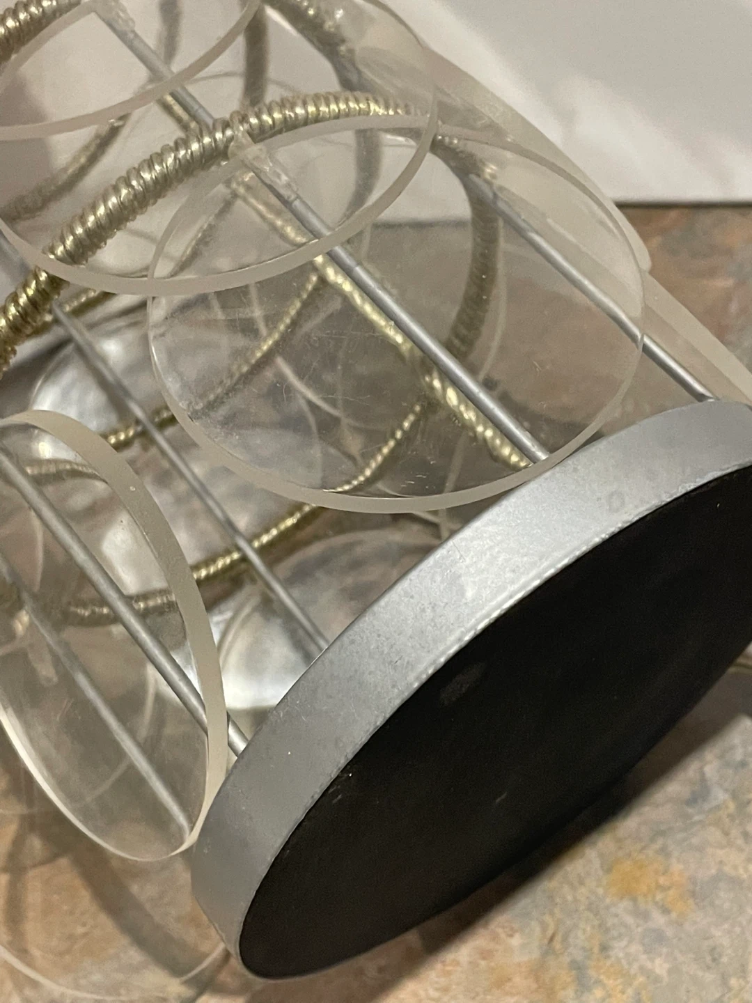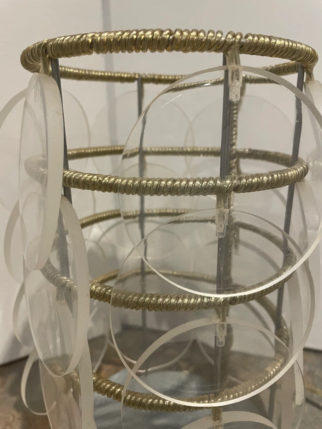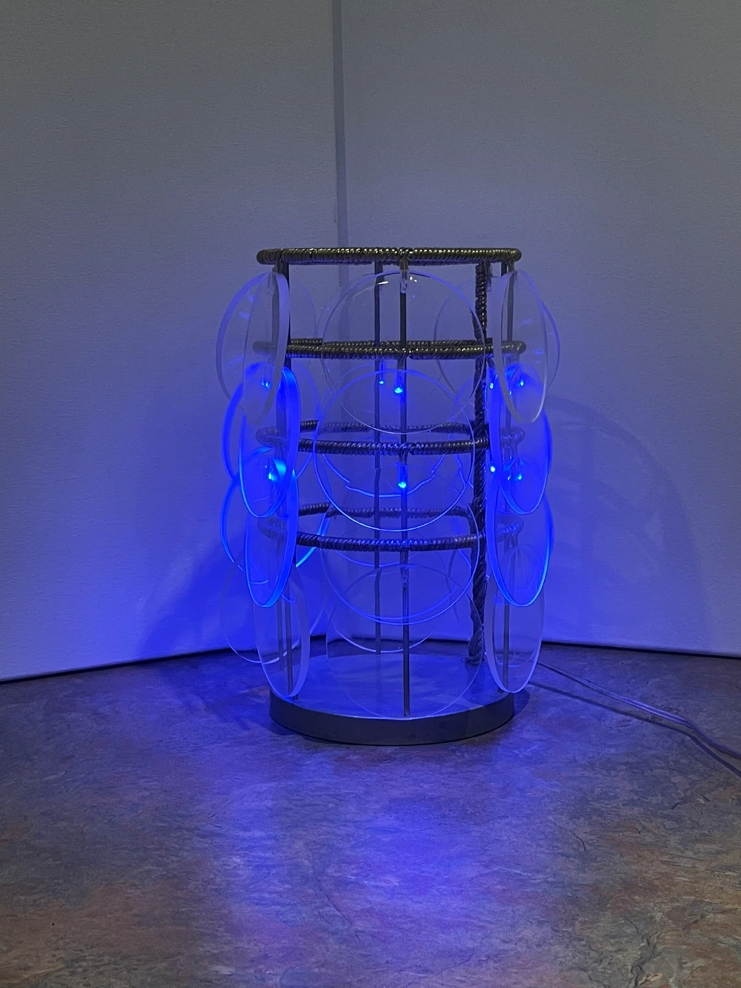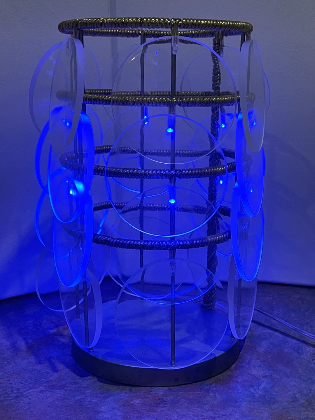 A rare vintage Ikea Trunna lamp made of acrylic disks on a metal frame. Gives off a lovely blue glow. Fantastic shape! Toggle on / off switch, clear electrical cord. 24 acrylic disks. Vintage before 2000, Heavy Over 1 Kg, Height 25cm , diameter 14cm