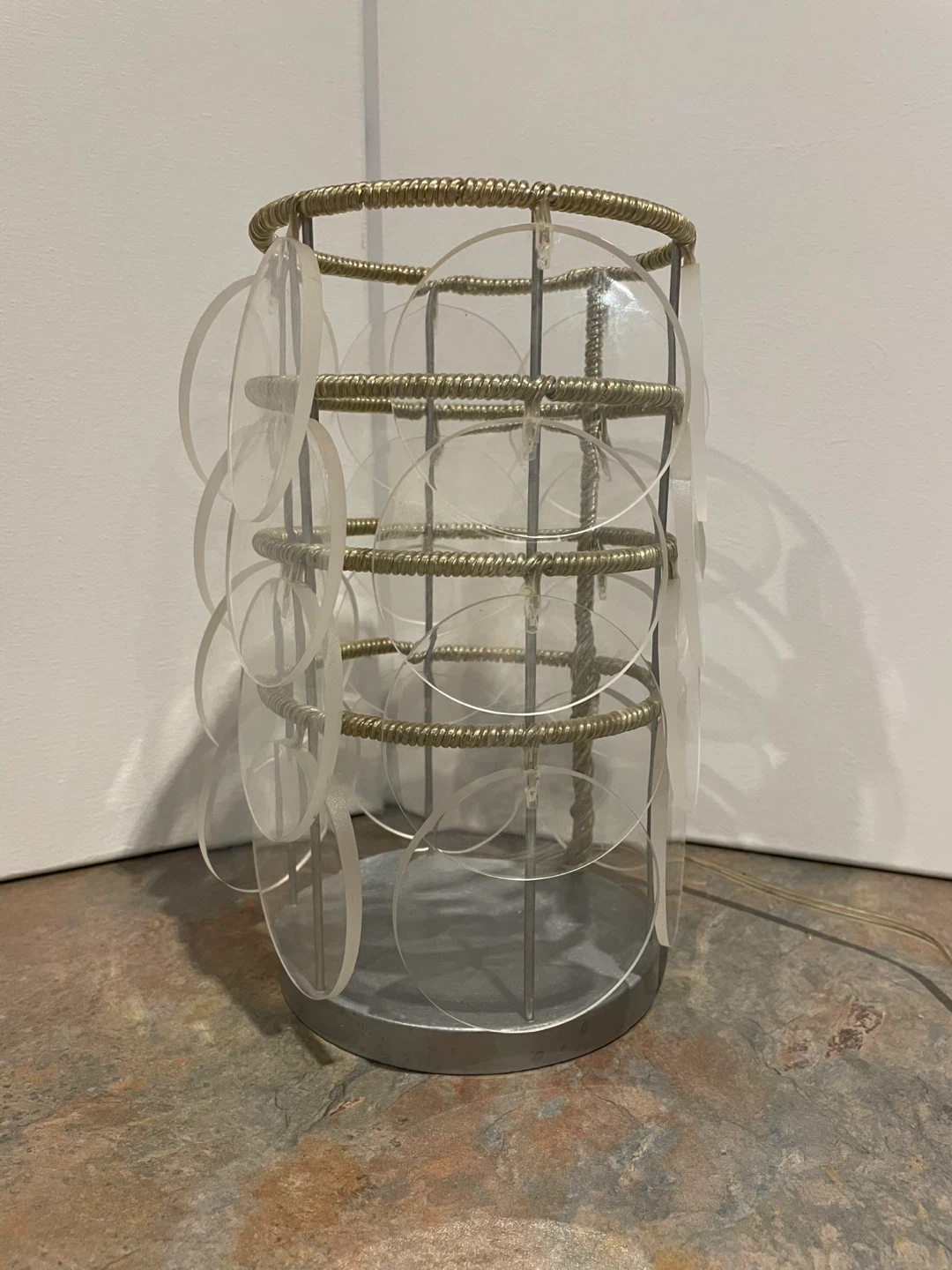 A rare vintage Ikea Trunna lamp made of acrylic disks on a metal frame. Gives off a lovely blue glow. Fantastic shape! Toggle on / off switch, clear electrical cord. 24 acrylic disks. Vintage before 2000, Heavy Over 1 Kg, Height 25cm , diameter 14cm
