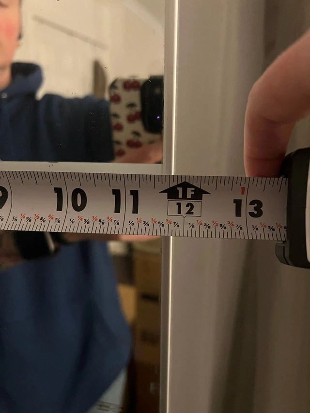 Wall mounted spinning mirror with storage. Mirror is 12” wide, 31 1/2” tall. Protrudes 8” from wall when shelf or mirror are facing out. Needs about 13” clearance to spin fully. See pics for details.