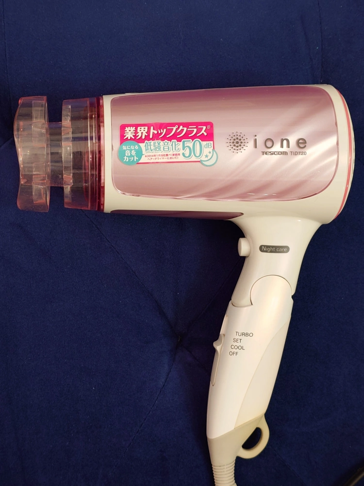 Purchased from Japan. Pink and white hair dryer, very chic design. Releases negative ions which make your hair smooth and shine. Foldable which makes it perfect for travel. Night care mode reduces noise so that you won't disturb others. Cool and turbo settings. Includes a long cord.