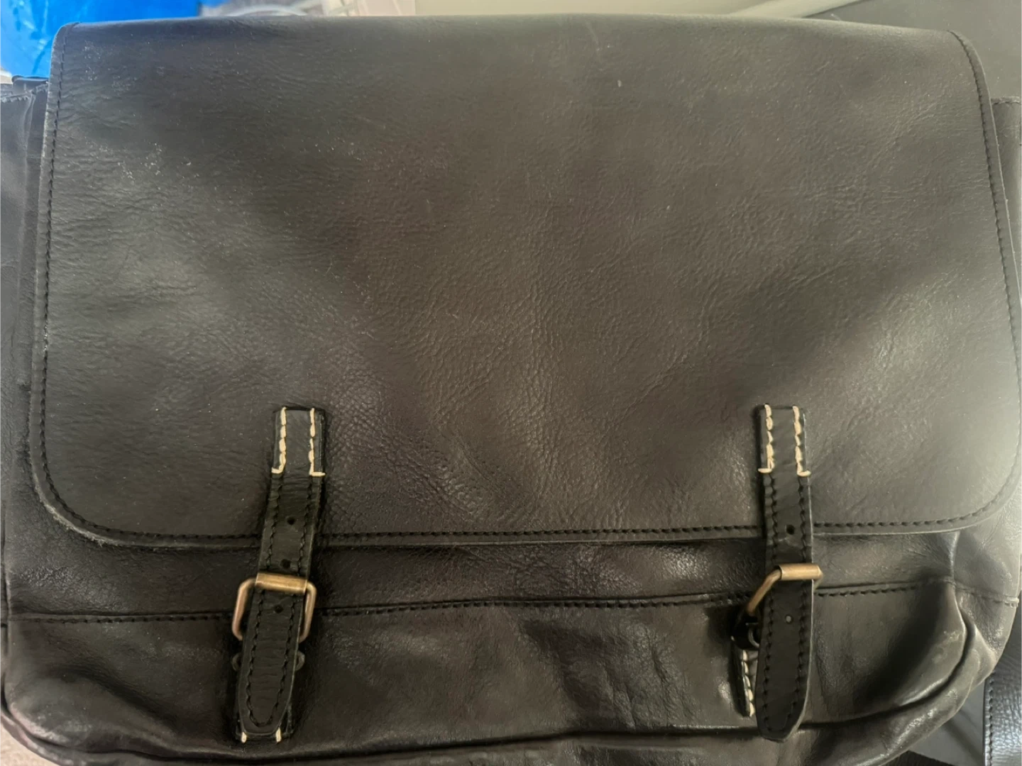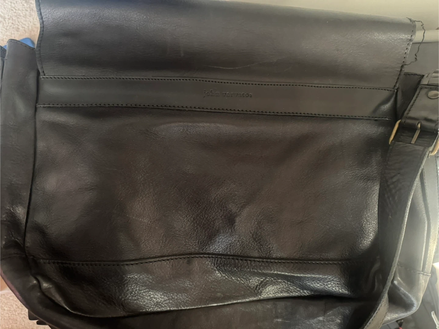 Genuine black leather messenger bag by John Varvatos. Crafted hand made in Italy. It's a stylish and practical bag for everyday use.