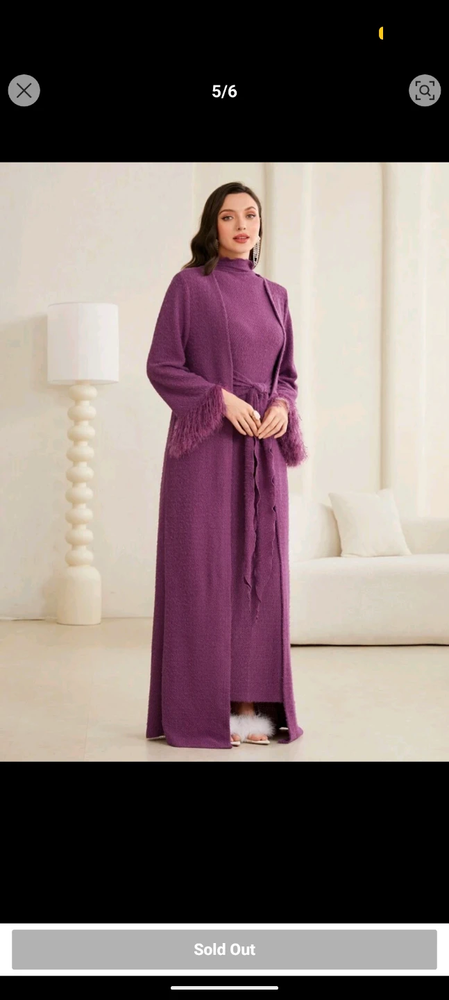 Brand NEW Purple Knit Cardigan/open abaya with Feather Trim